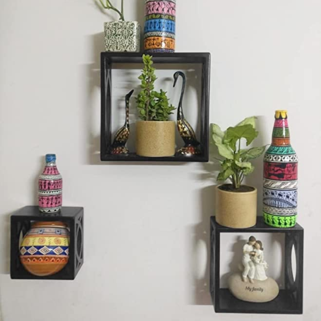 Santarms wall decor shelves with their modern and attractive look will give every home its perfect finishing touch. The 3 Cube Intersecting Mounted Floating Shelves are beautifully designed to be functional alike. Add it to your room you see the difference in making an elegant look. It suits almost is great for the kitchen, dining room, living bedroom, or office. Use as a practical shelf bookshelf display collectibles, photos, books, etc., decorative items proud show-off items. Its easy mount comes with all the necessary mounting hardware. décor floating unique design that makes empty take center stage. gives ample space for CDs, and figures. Once the product is assembled structure remains stable and can placed in the hall, an eye-catching impression this color displays clearly no matter what. Dirt dust on it.