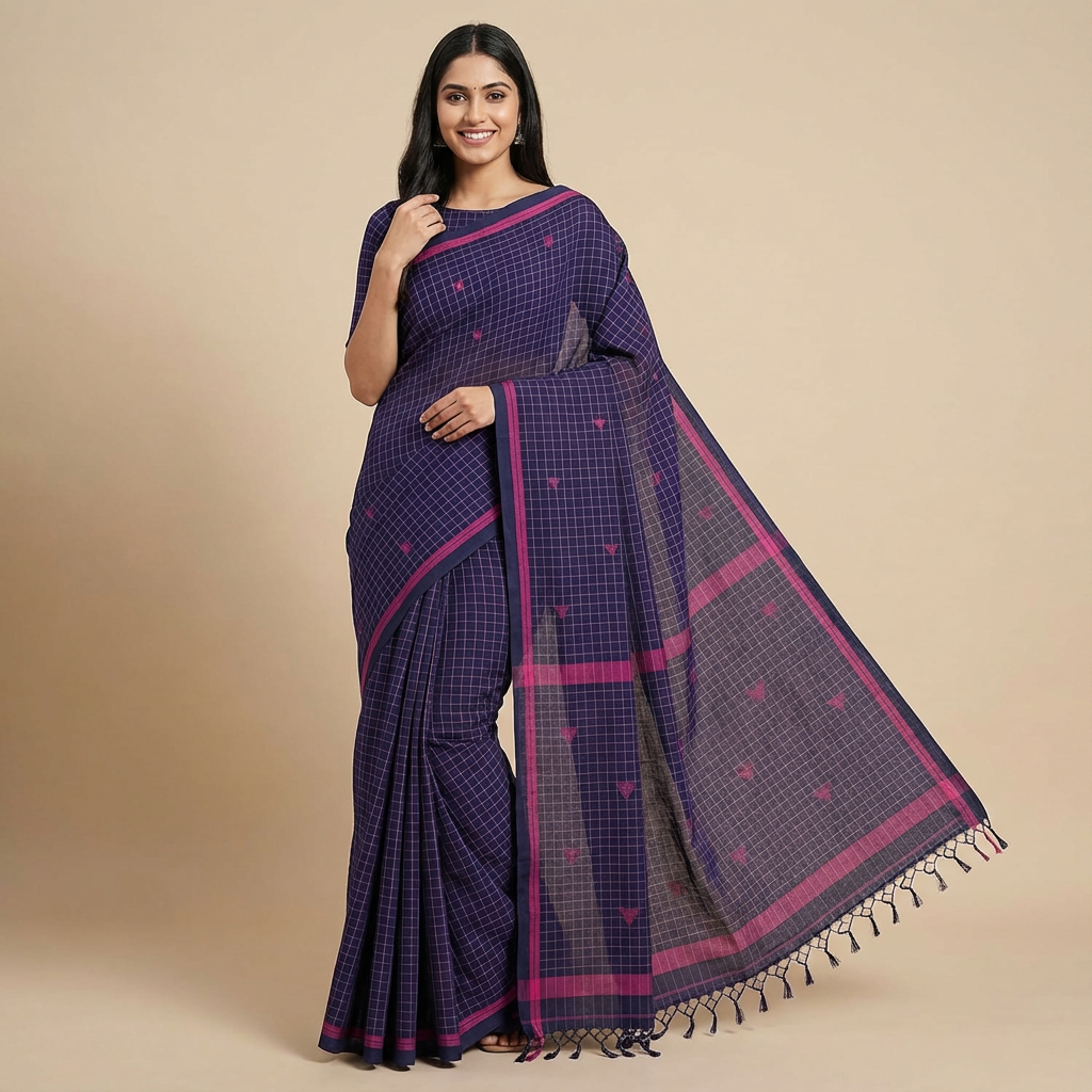 100% COTTON BODY CHECK WITH SMALL JAMDANI BUTI SAREE