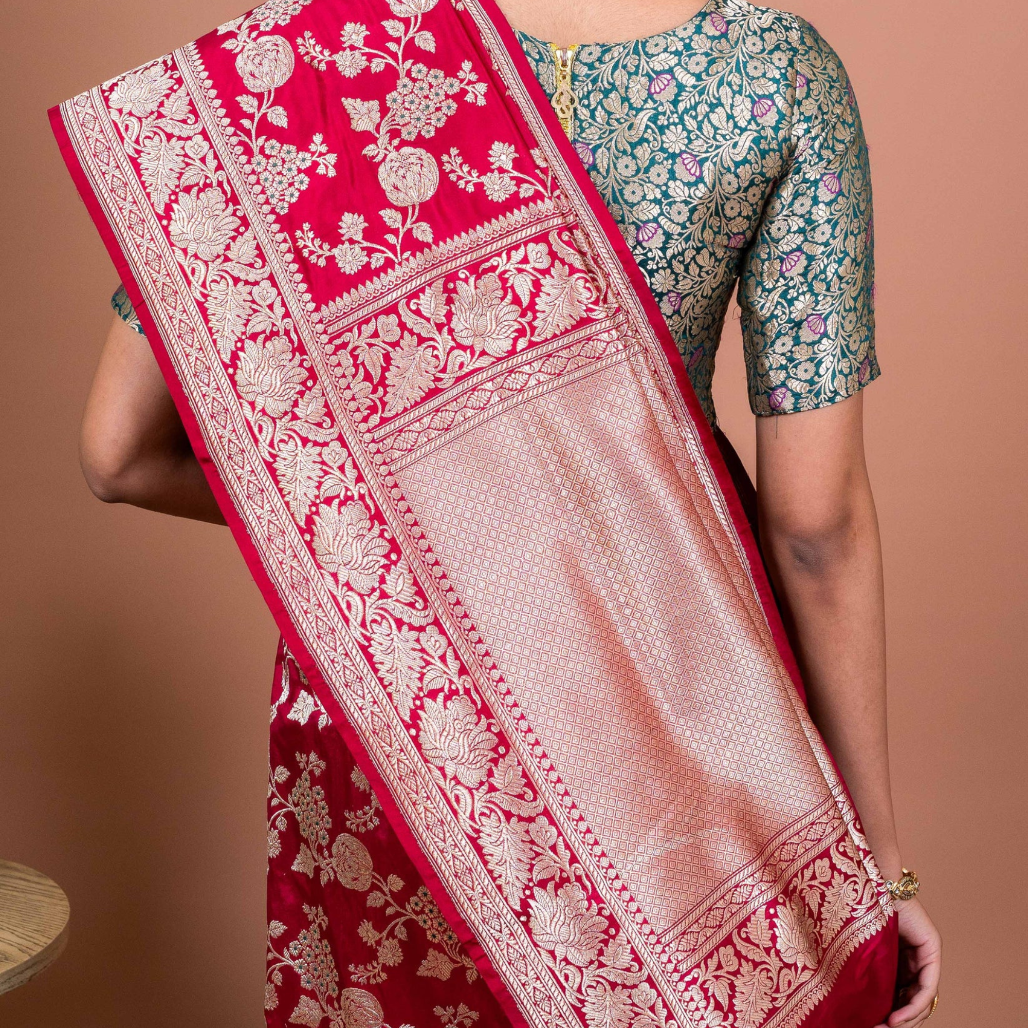 Handwoven Banarasi saree with intricate Anar Jaal design