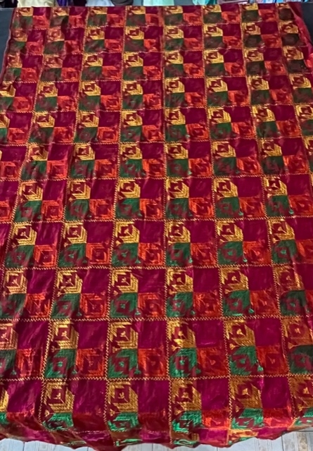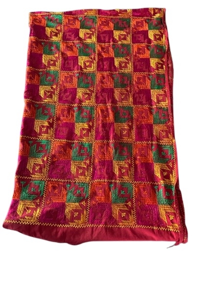 Bagh is the traditional embroidered shawl from Punjab that is made for special ceremonies like weddings. It is mostly used as a canopy during the wedding and then gifted to the bride. It’s a symbol of happiness, prosperity and well being of a woman. One bagh takes about 2-3 months to embroider.
