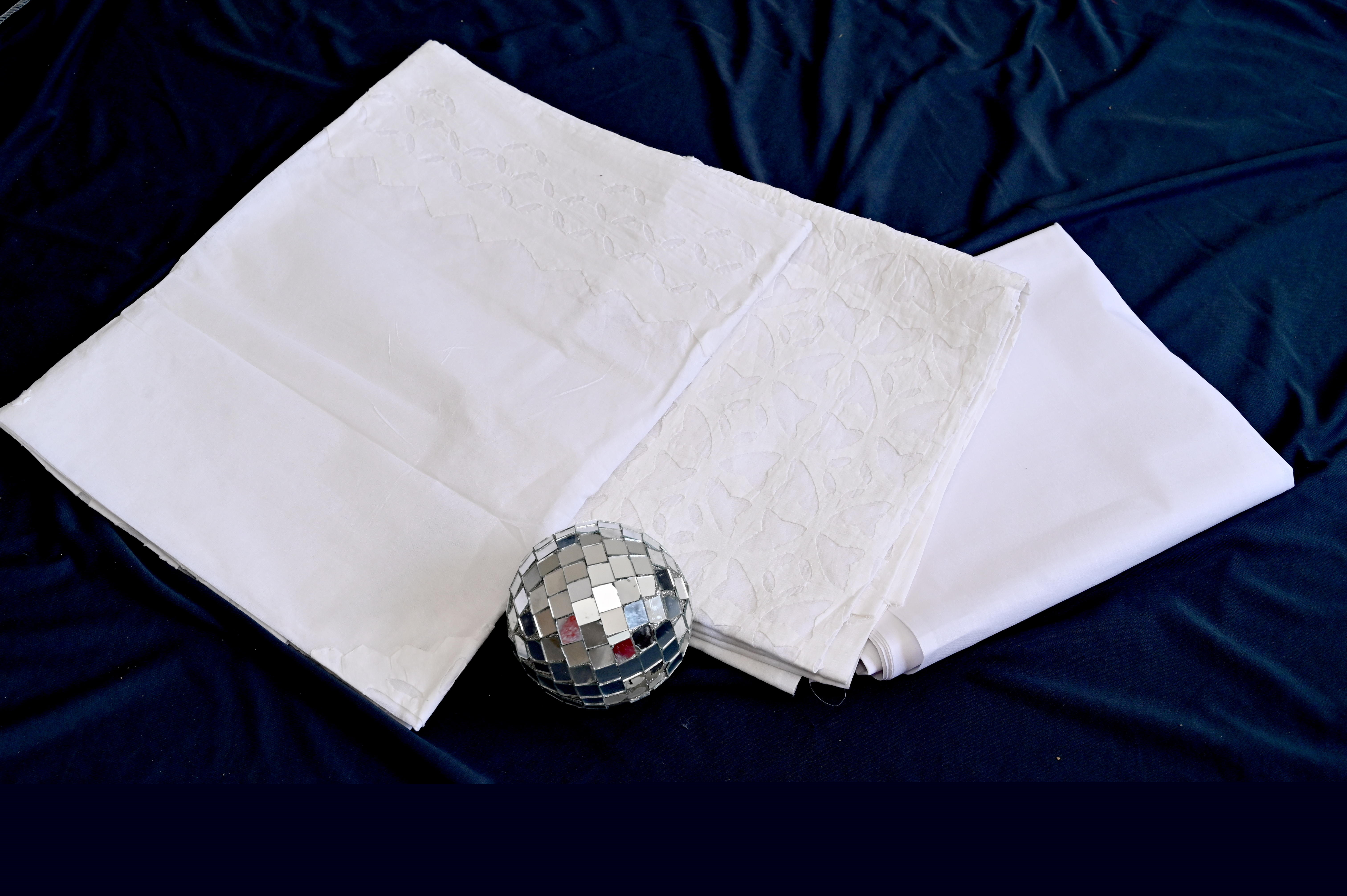 Appliqué is ornamental needlework in which pieces or patches of fabric in different shapes and patterns are sewn or stuck onto a larger piece to form a picture or pattern. from Barmer Rajasthan.
