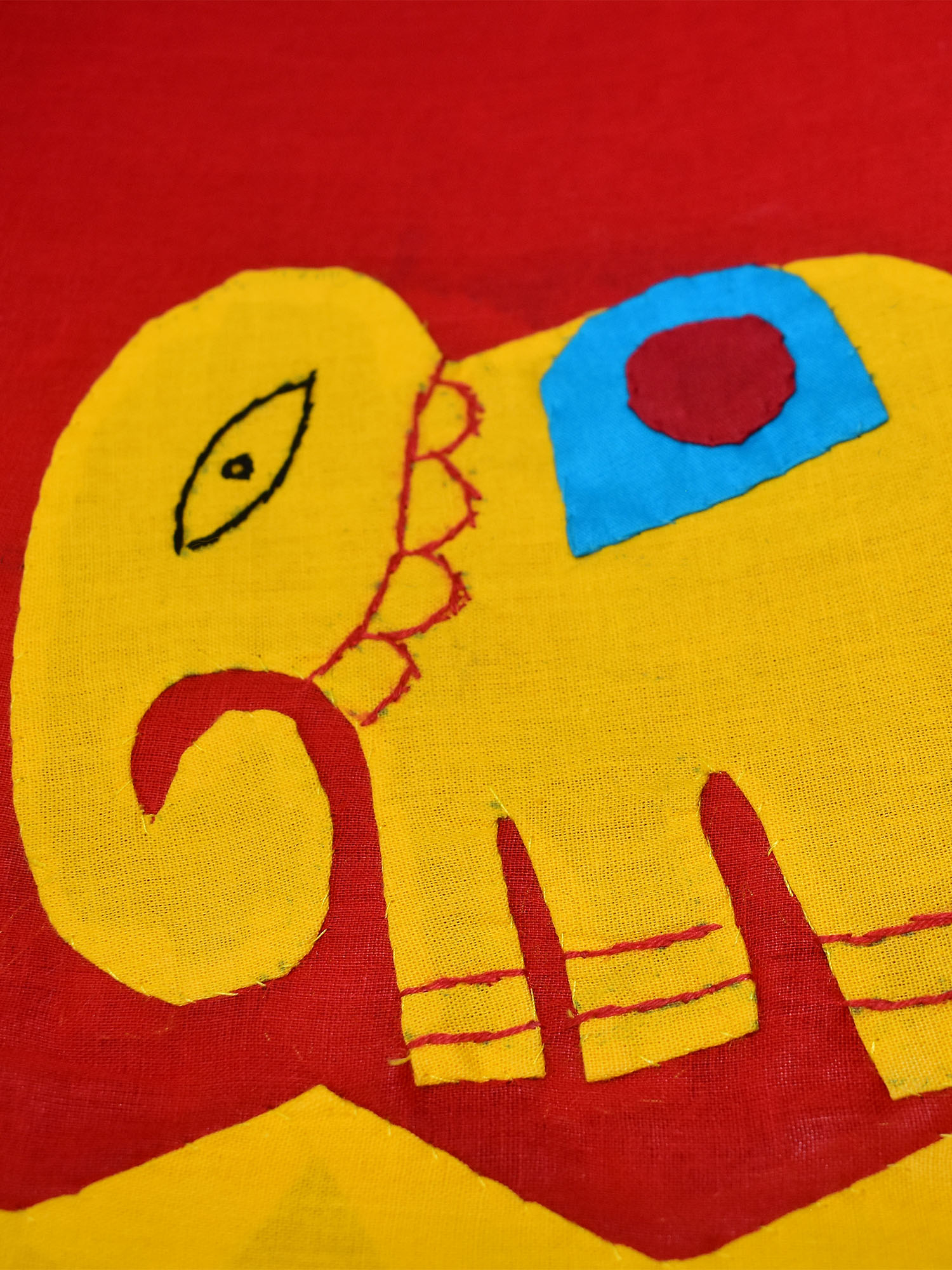The intricate applique work showcases skilled craftsmanship, giving the saree a unique and artistic appeal. Its vibrant red color makes it perfect for festive occasions, cultural events, or even elegant daily wear.