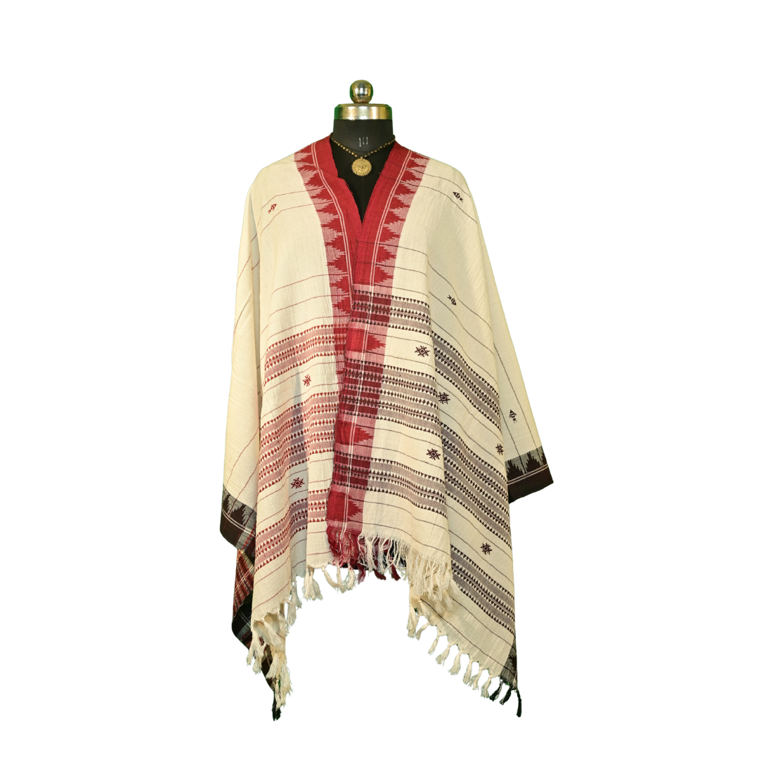 This Authentic Kotpad Handloom Cotton Dupatta is a premium handcrafted textile woven by tribal artisans of Koraput, Odisha. Known for its natural Aal (Indian Madder) dyeing and traditional weaving techniques, Kotpad textiles are among India’s oldest sustainable crafts. The Dupatta features a natural off-white base, rich maroon central panel, and classic tribal motifs meticulously woven into the fabric.