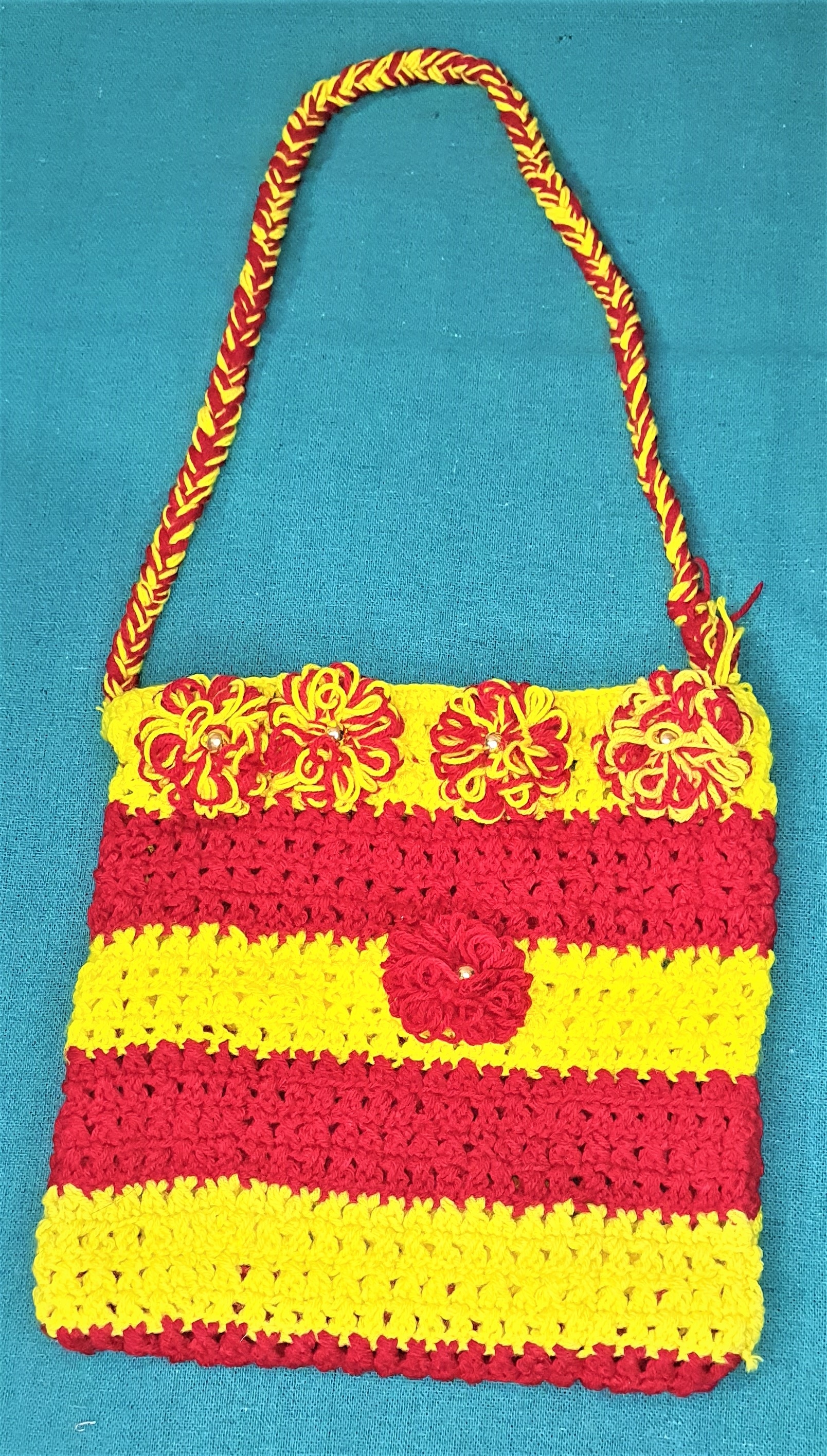 Handmade Woolen Purse - Maroon & Yellow