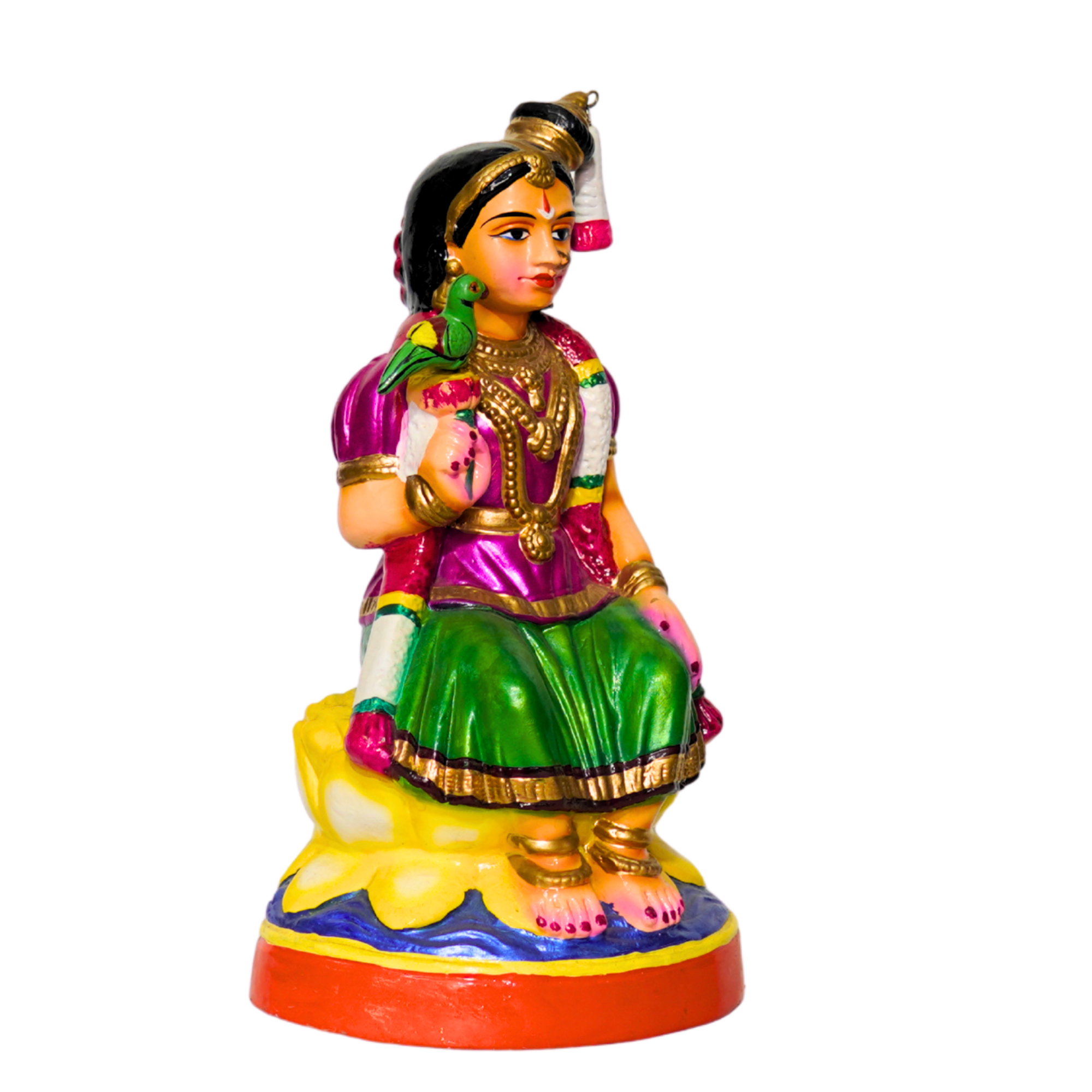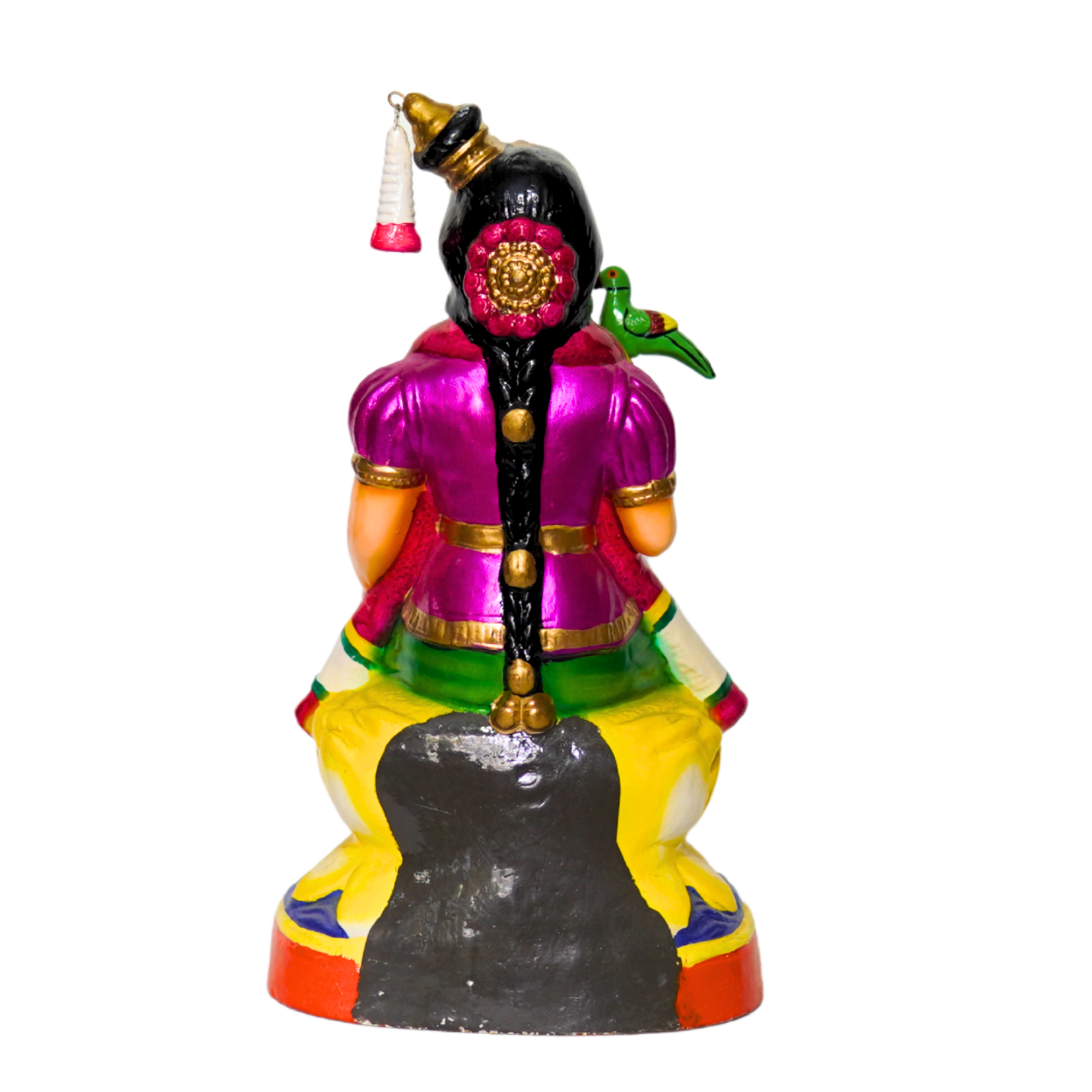 This 14-inch Bala Andal clay idol is a beautiful representation of devotion and tradition. Bala Andal, known for her unwavering love for Lord Vishnu, is celebrated as one of the most prominent female saints in Tamil literature. Crafted with precision from natural clay, this idol embodies grace, purity, and cultural heritage. Its intricate detailing and smooth finish make it a perfect addition to your puja room, temple, or as a decorative piece that radiates spiritual energy. Lightweight yet durable, this eco-friendly idol is a timeless treasure for devotees and collectors alike.