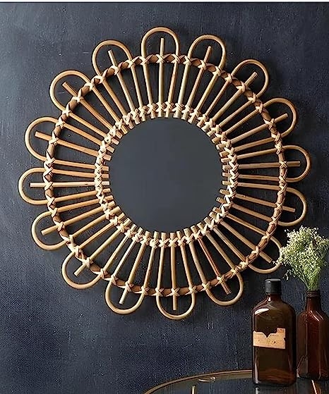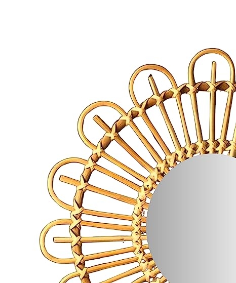 Handcrafted Bamboo Round Shaped Cane Rattan Wall Mirror | 55x55 cm