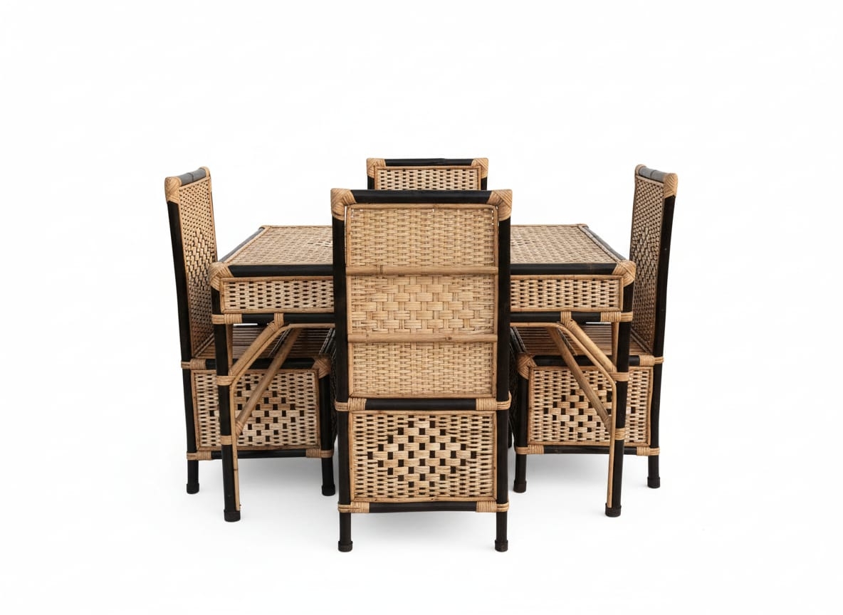 BAMBOO WAALAH Dinning Table 4 Seater for Family Set of 4 Chair and 1 Centre Table