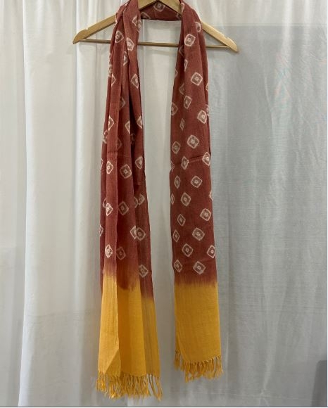 Bandhani woollen stole yellow and brown, Handwoven, Fabric: Pure Marino Wool