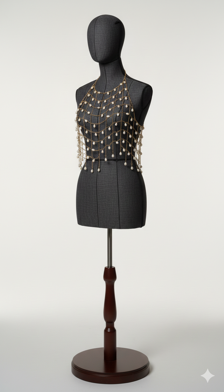Elevate your evening wardrobe with this handcrafted statement piece. Designed for the bold and the sophisticated, this Gold-Tone Chain Mesh Top seamlessly blends edgy structural design with timeless elegance.