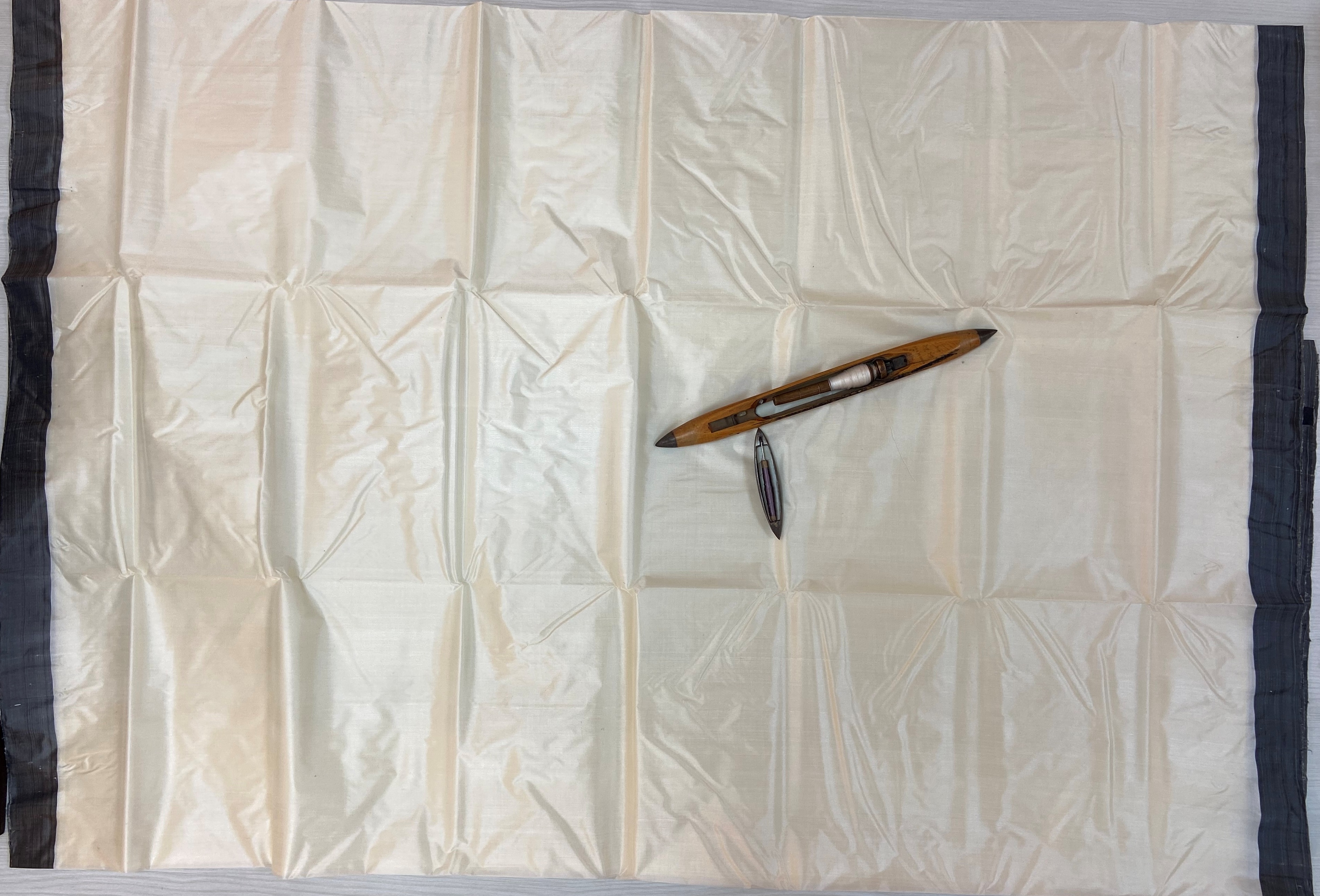 Beige & black funki Garad saree with simple striped border, made with 100% Silk yarn