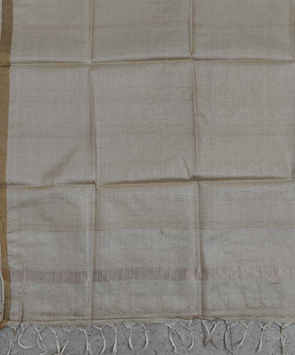 Beige Black Handwoven Tussar Silk Dupatta SFTDUP1406