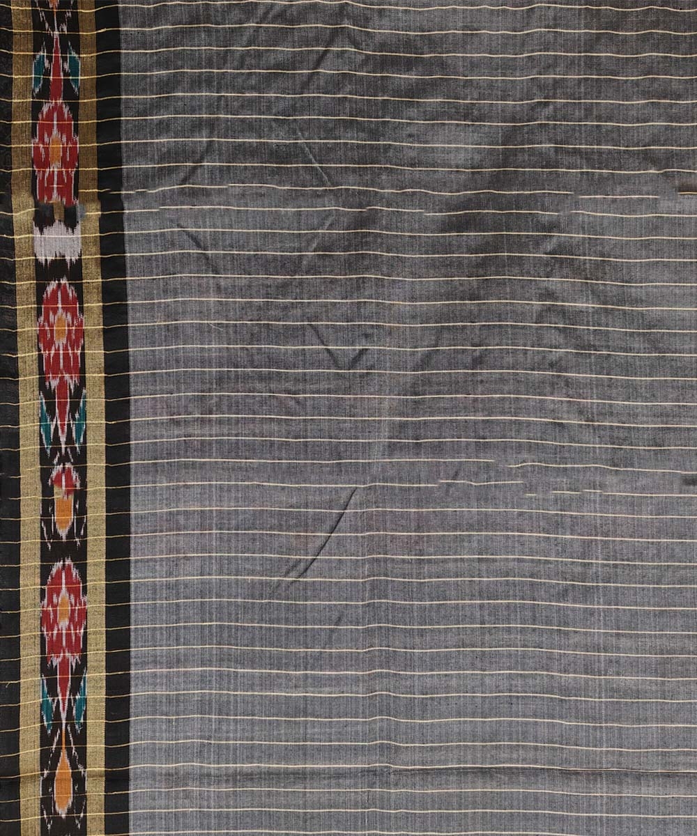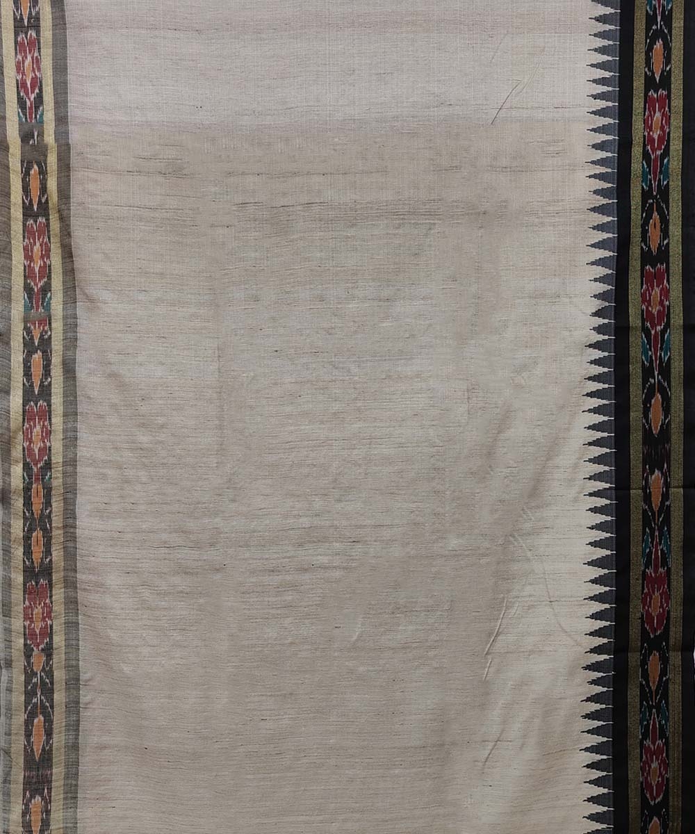Beige Black Sambalpuri Handwoven Ikat Border Tussar Silk Saree SFTSAR1395