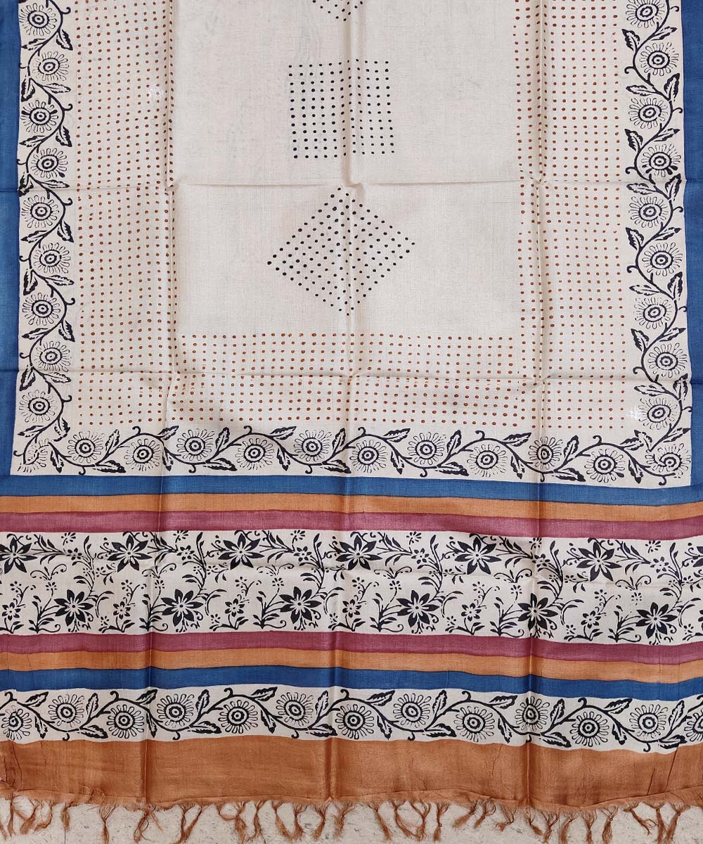 Beige Blue Handwoven Tussar Silk Dupatta SFTDUP1403