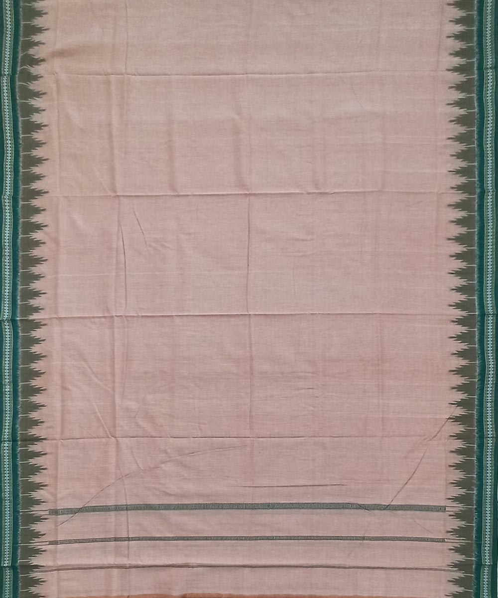 Beige Green Sambalpuri Handwoven Cotton Dhoti Gamuchha SFSJOD1830