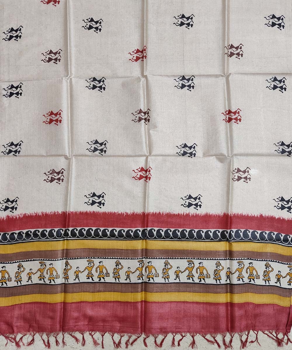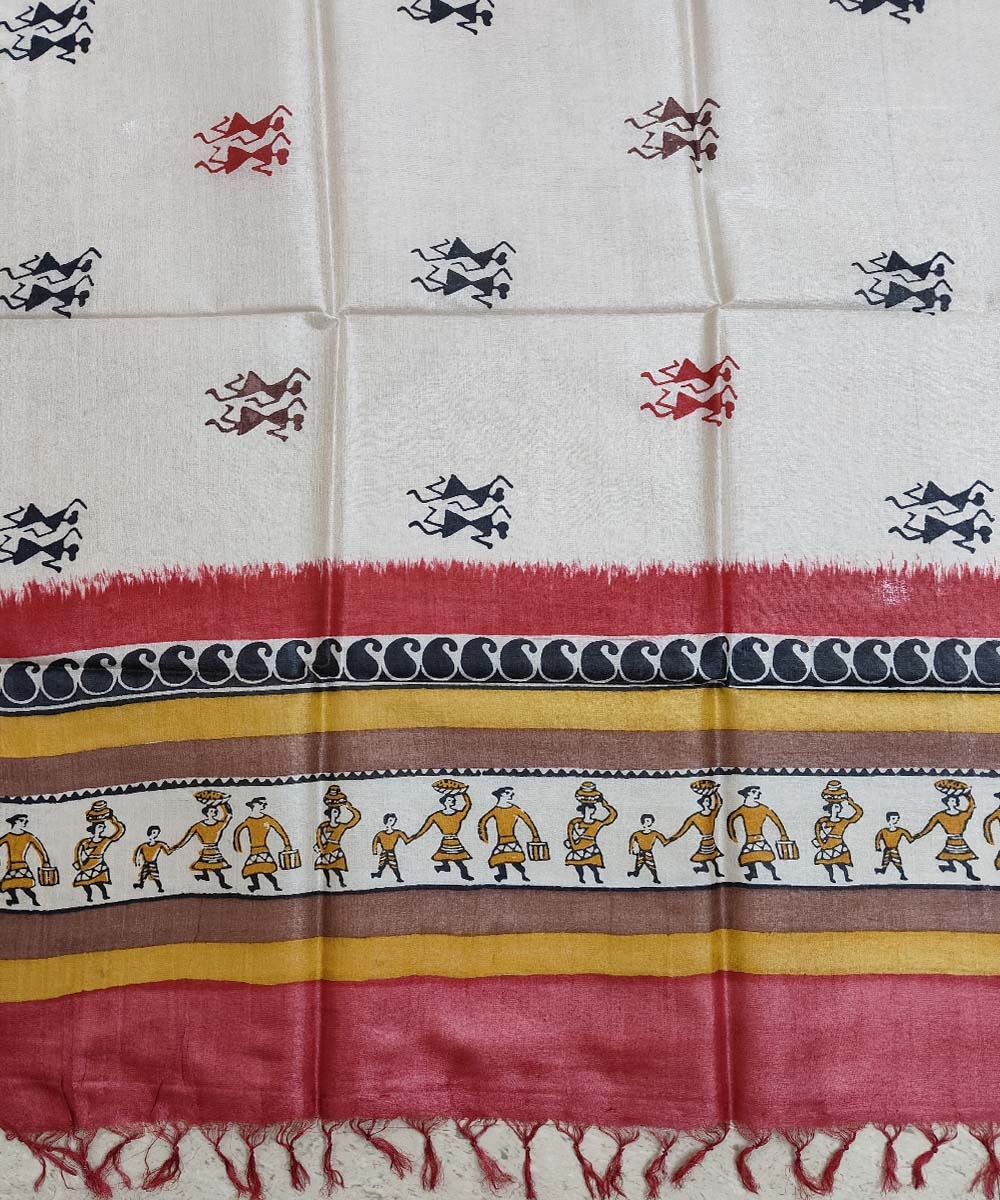 Beige Handwoven Tussar Silk Dupatta SFTDUP1399