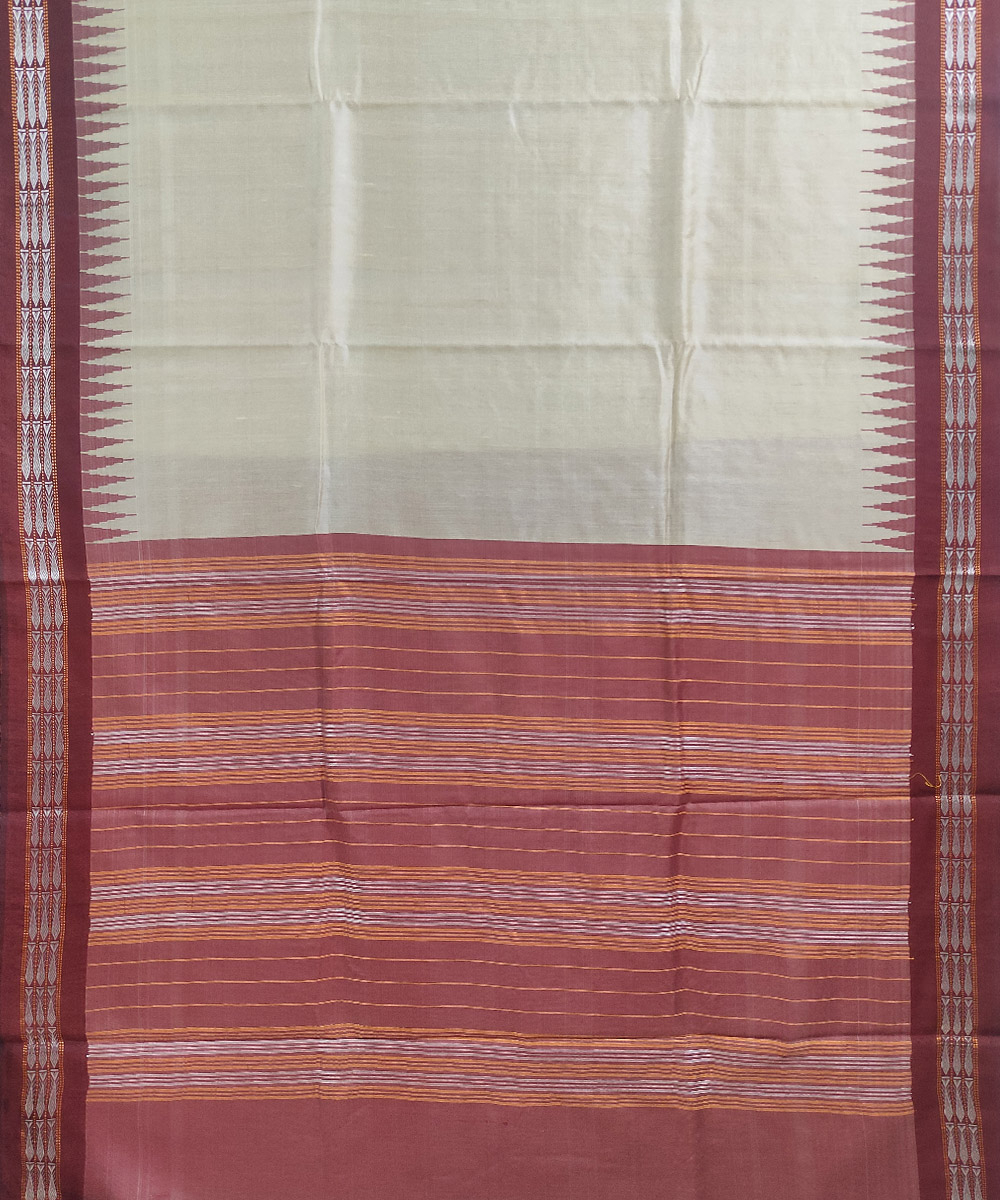 Beige Maroon Sambalpuri Handwoven Bidarbha Tussar Silk Saree SFTSAR0917