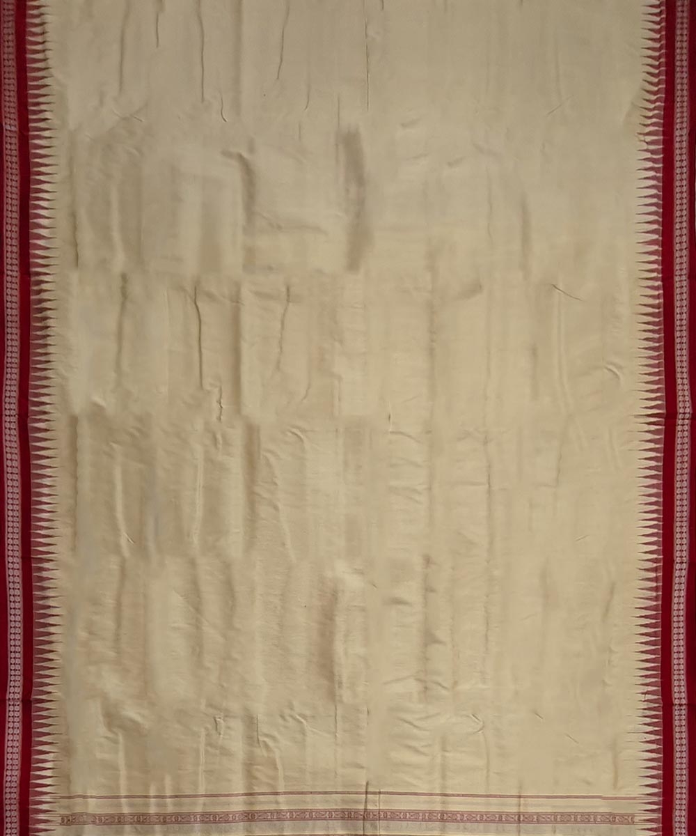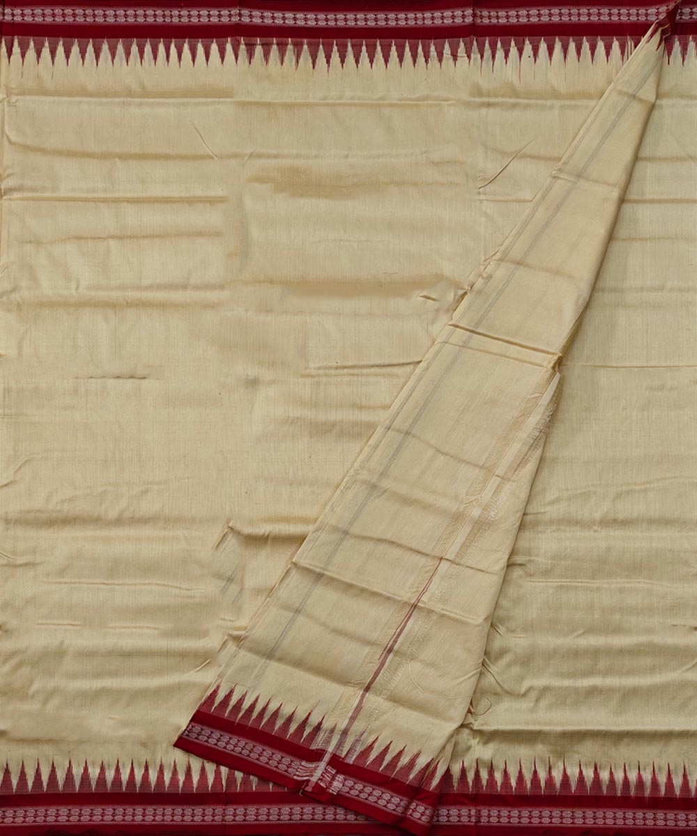 Beige Maroon Sambalpuri Handwoven Silk Dhoti Gamuchha SFSJOD2067