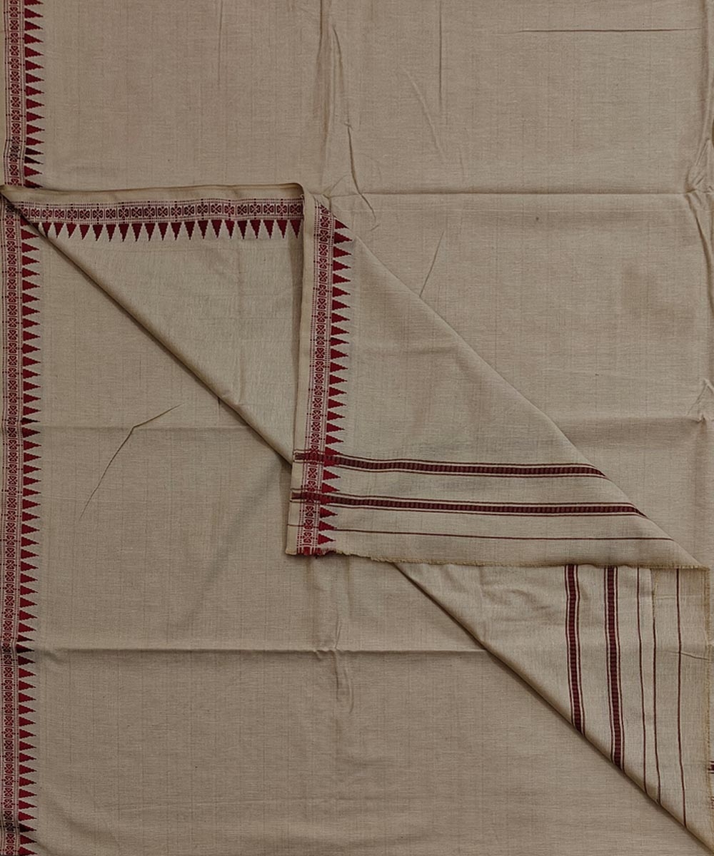 Beige Sambalpuri Handwoven Cotton Dhoti Gamuchha SFSJOD2163