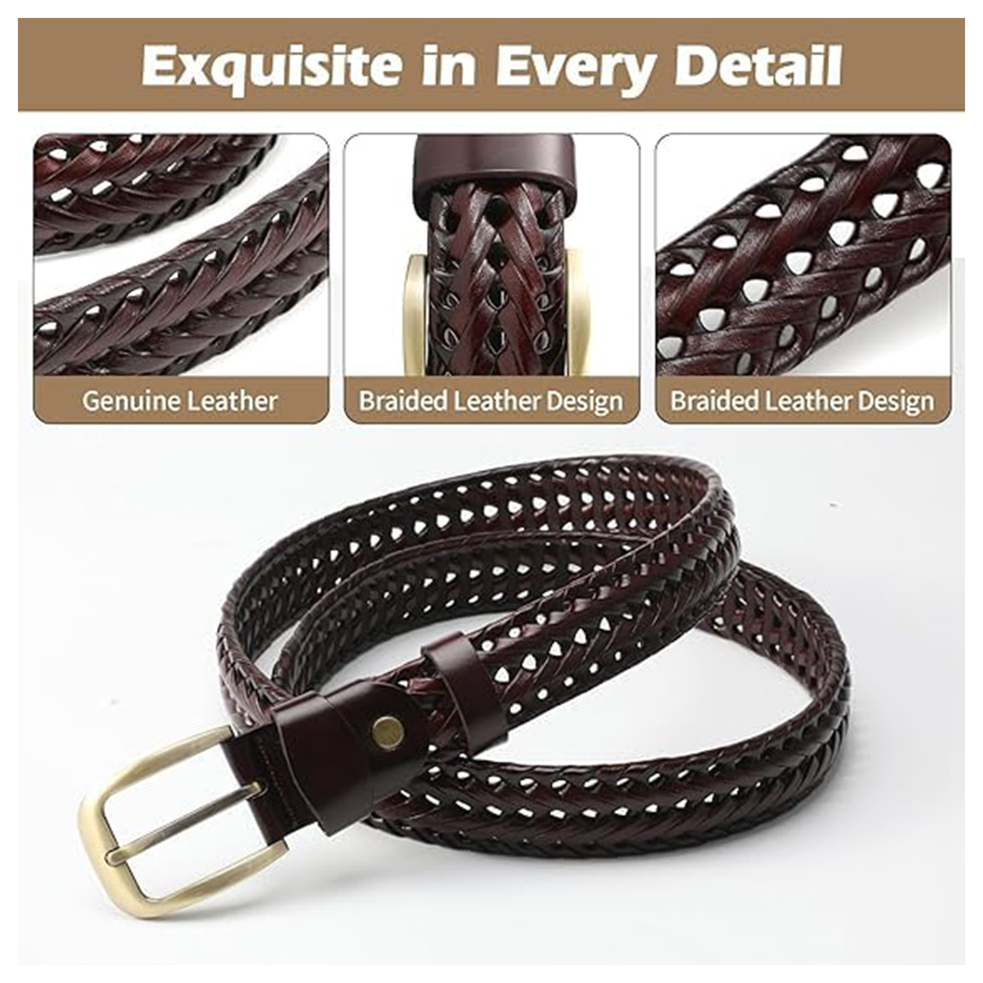 - Adjustable: The braided belt has a hollow and braided design.