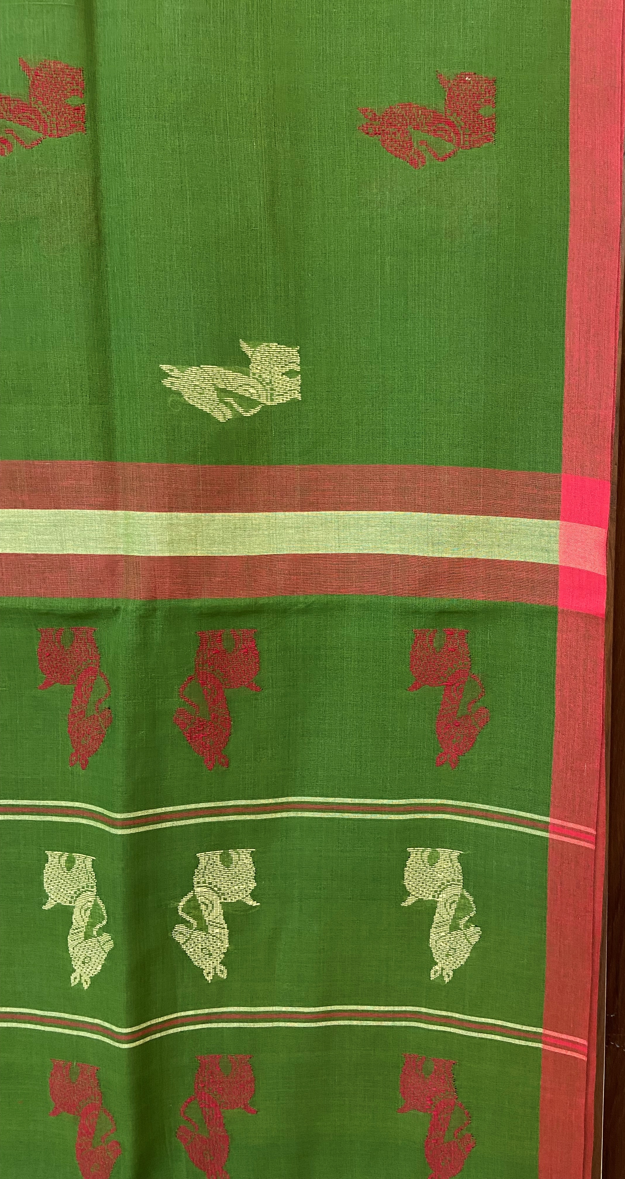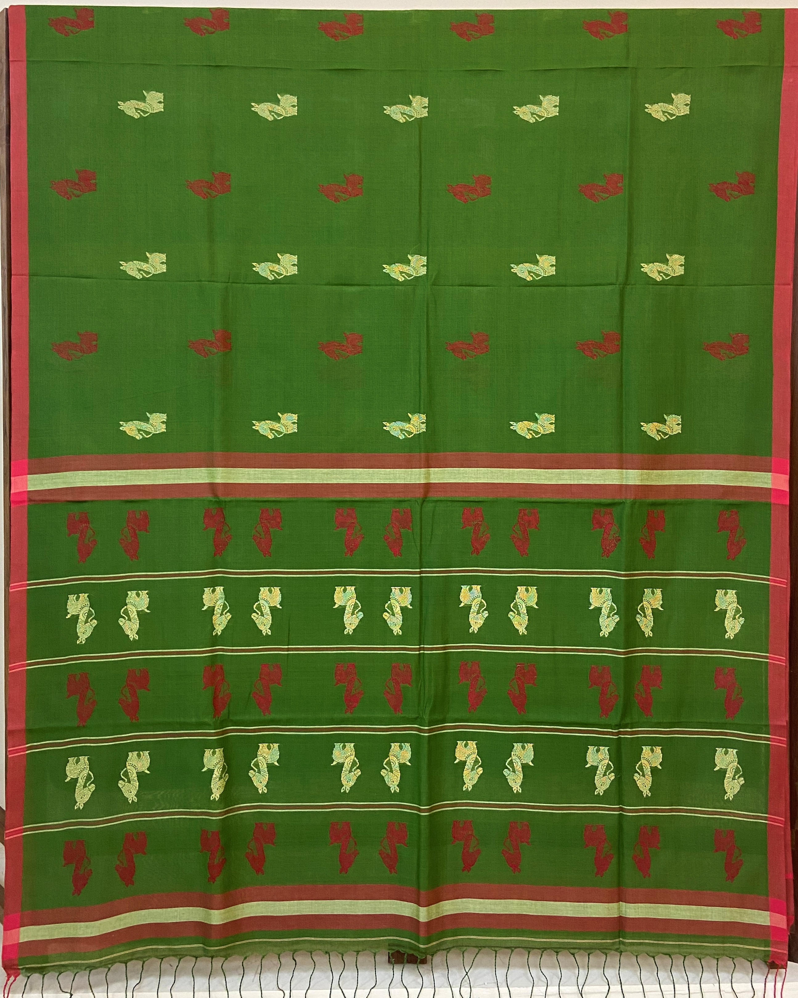 Bengal GI tagged Traditional green cotton Santipuri saree