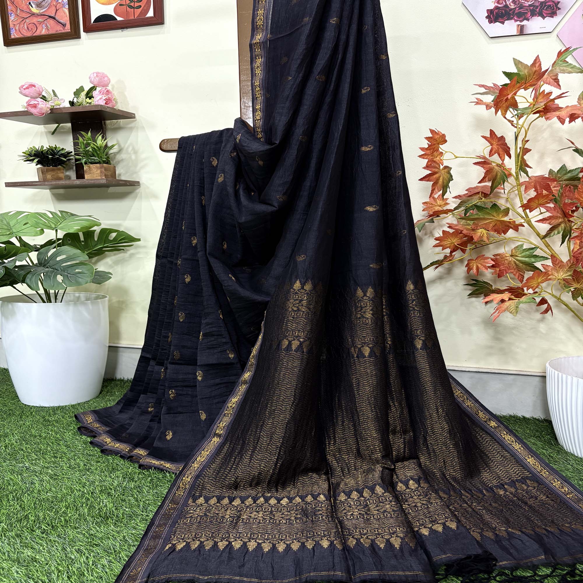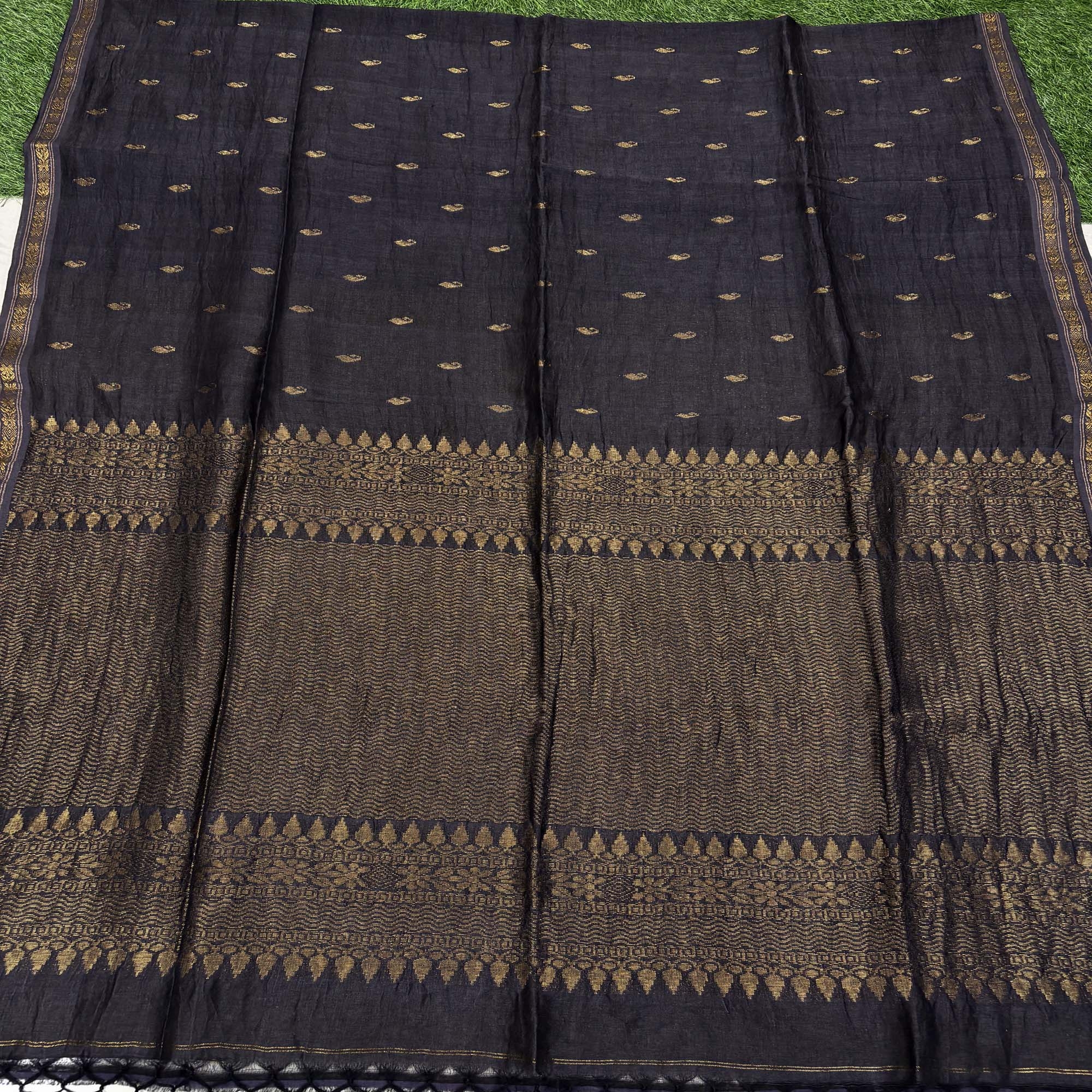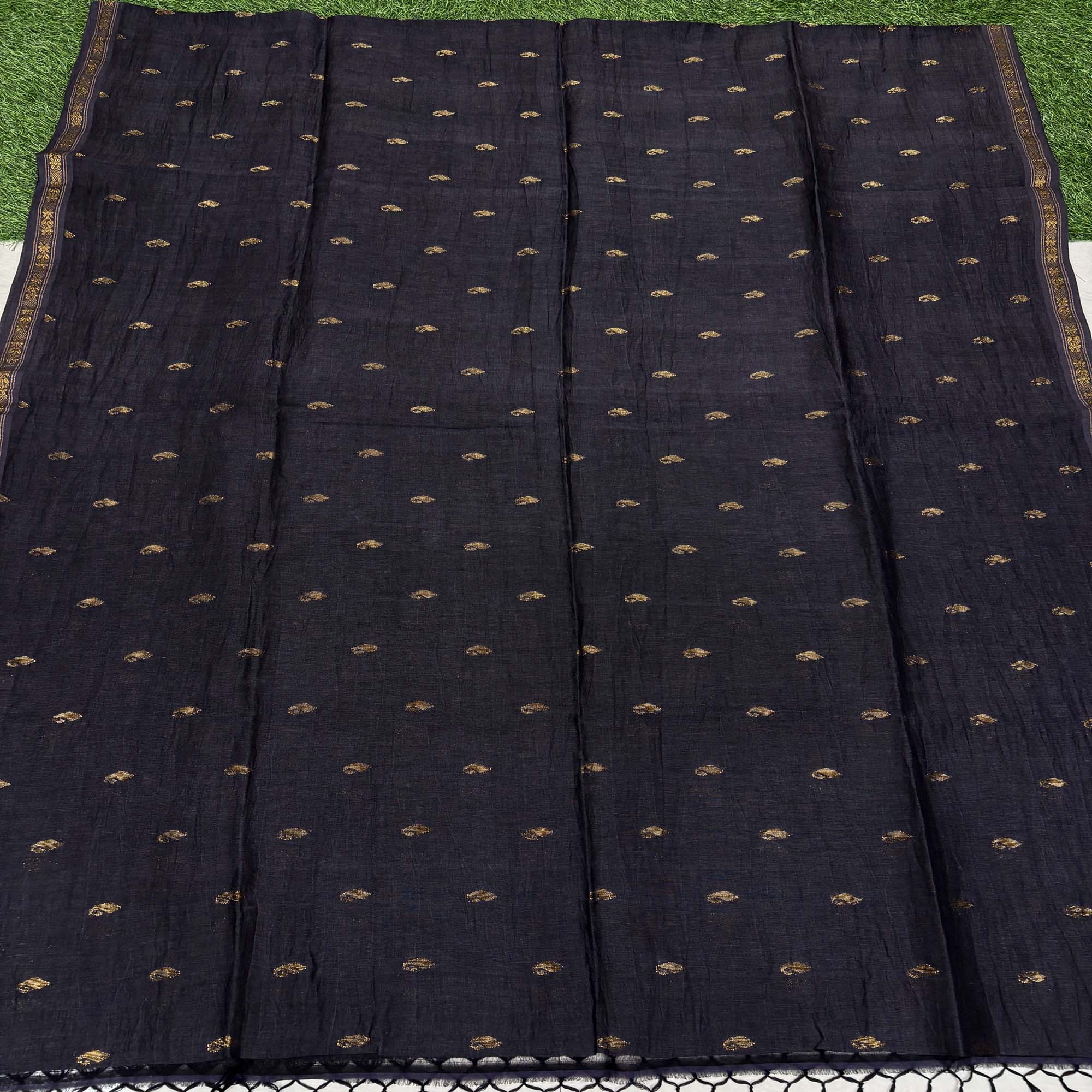 Black Paisly Buta Organic Linen Jamdani Saree