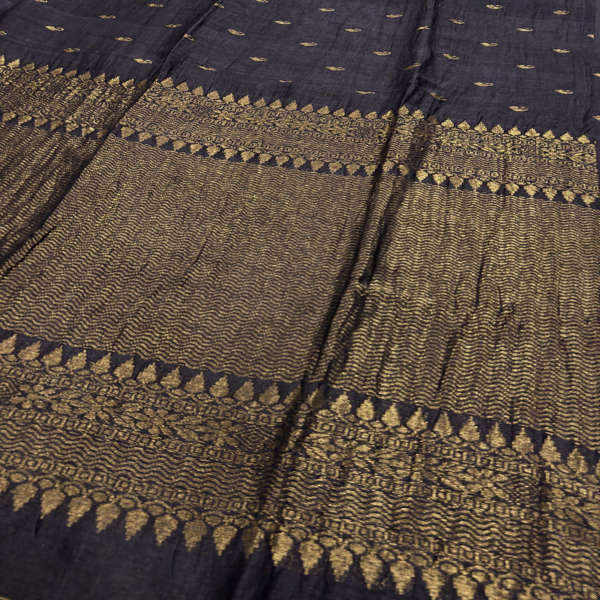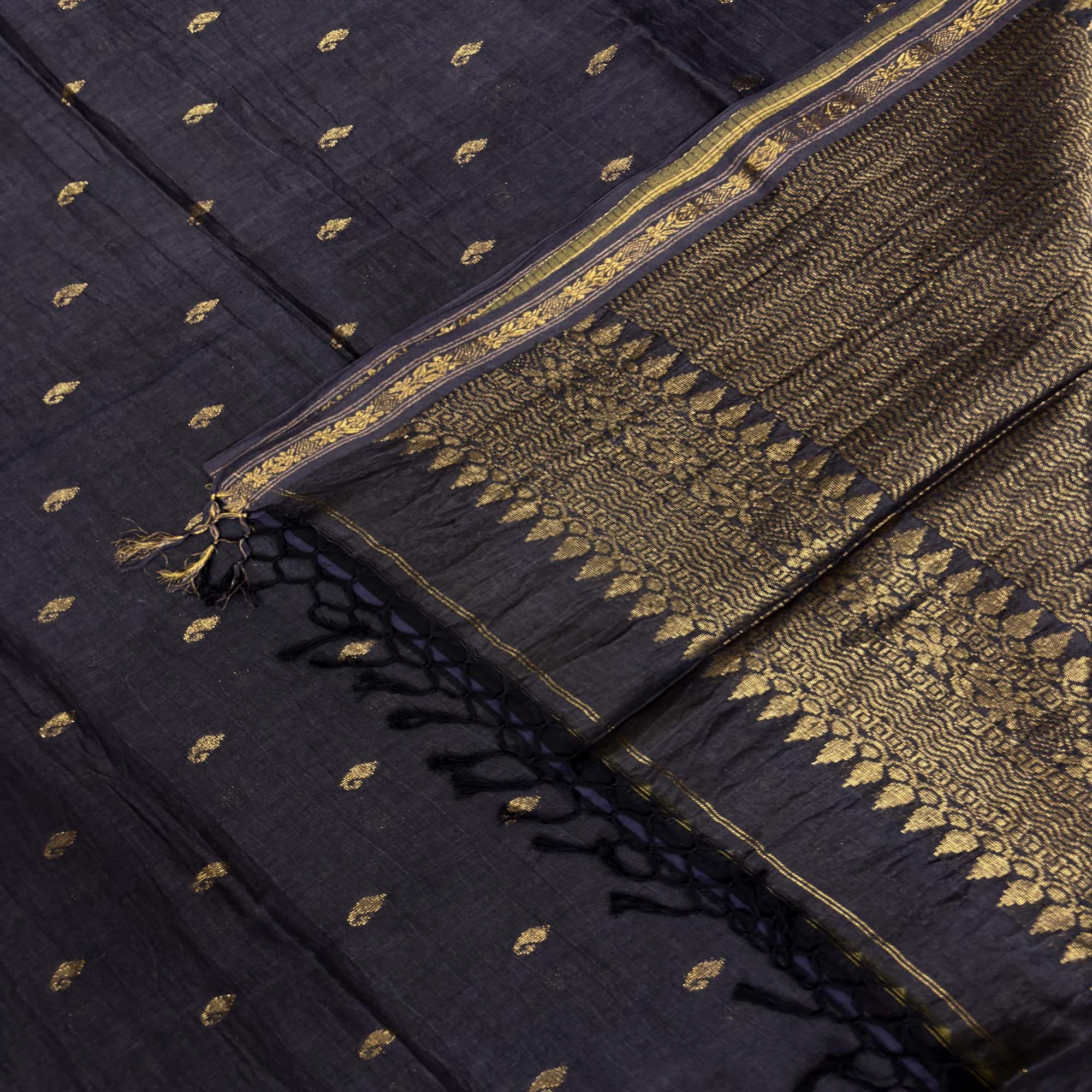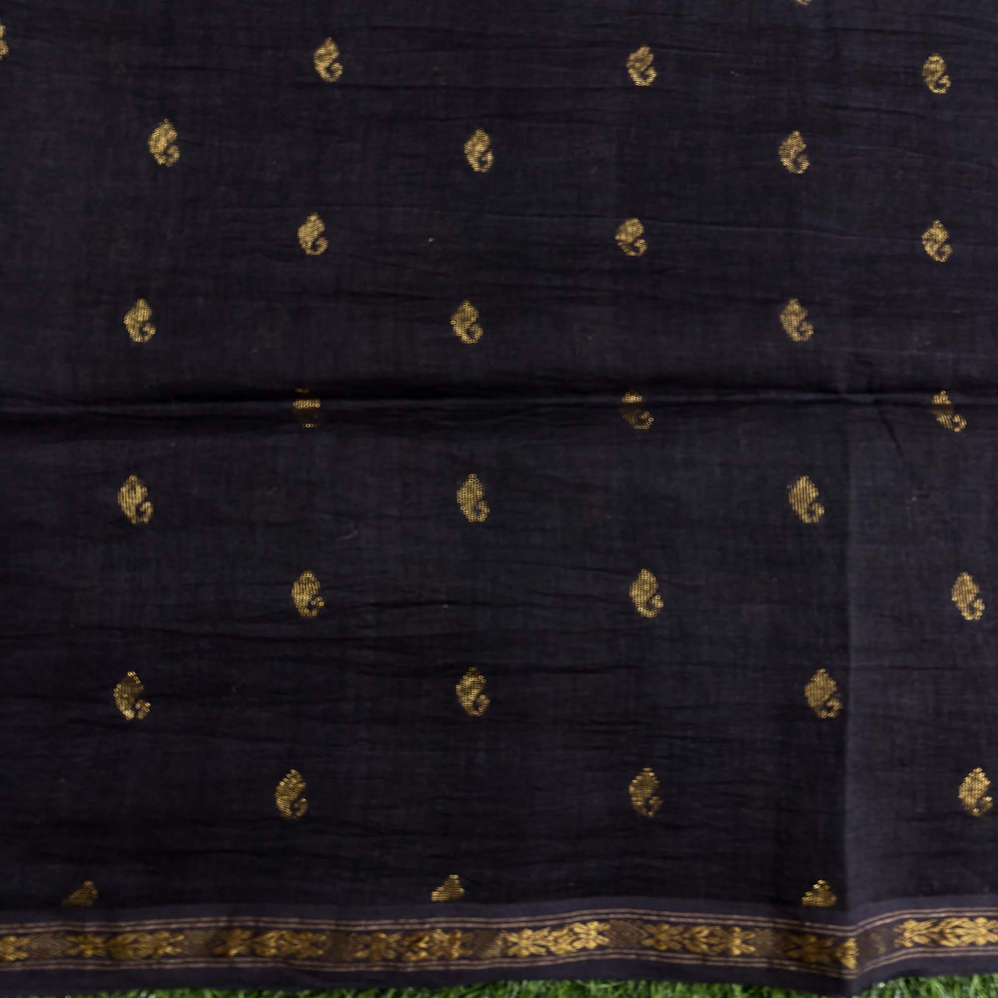 Black Paisly Buta Organic Linen Jamdani Saree