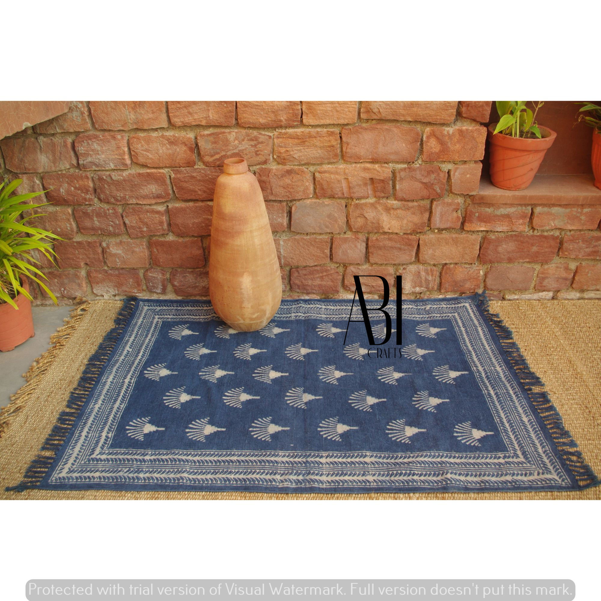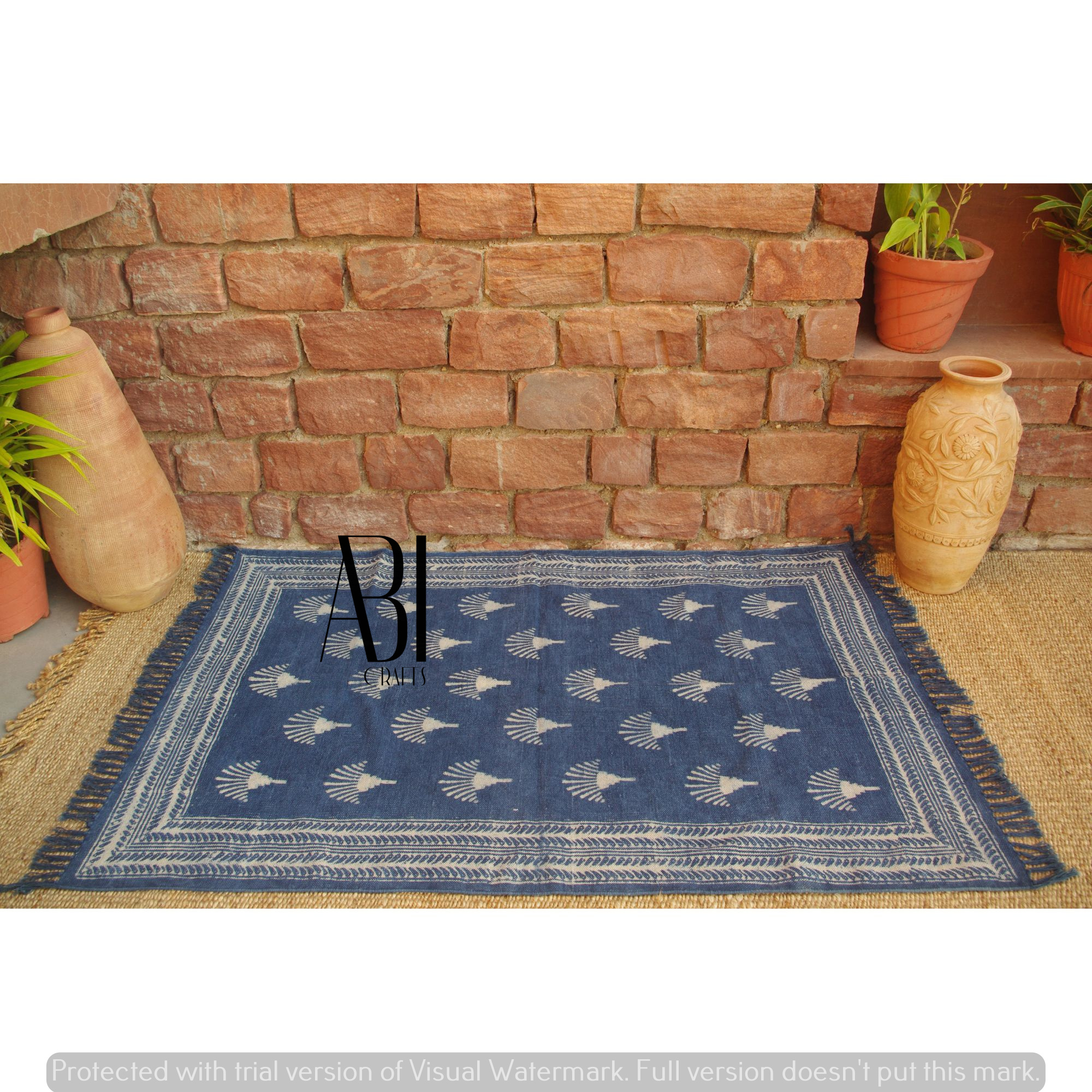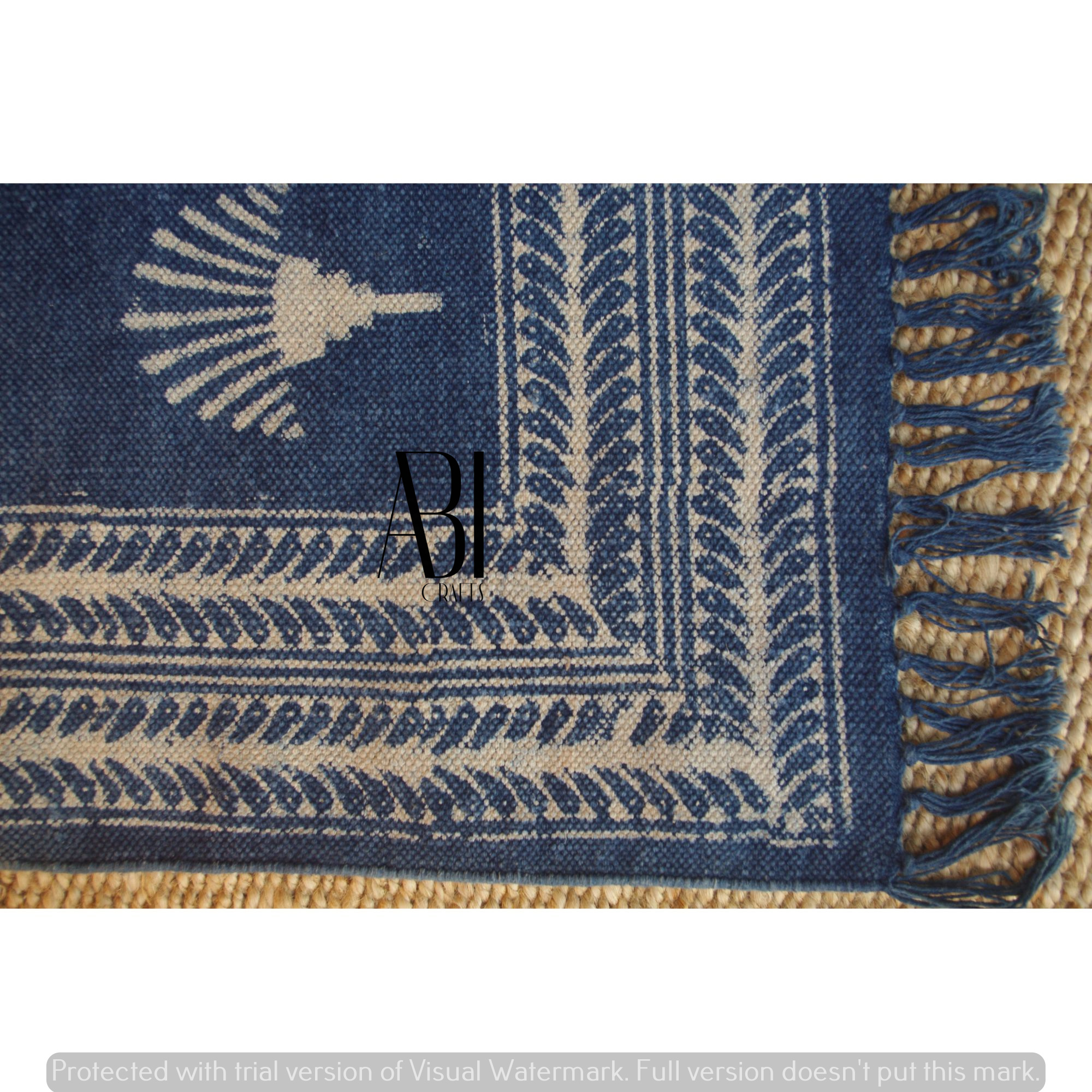 Our handwoven cotton-printed rugs are the natural gateway of traditions flowing to your carpet area. Our skilled artisans curate these rugs using 100% cotton and all-natural fabric. The patterns and color scheme are elegant and harmonious at the same time. Enhance your floor with our cotton-printed rugs and customize your kitchen, living room, and bedrooms with the vibrance of Indian culture. The contrasting colors attract the eyes and its soft homely texture provides excellent comfort and warmth. All the materials used are of premium quality, which makes our brand reliable, sustainable, and trustworthy in the handcrafted rugs industry. Cotton-printed Rugs – Our cotton-printed rugs are easy to clean, and their minimal shedding makes them long-lasting.– Our convoluted patterned handmade cotton printed rugs will upgrade your living room, kitchen, and bedroom floors– Material: made from 100% cotton and chemical-free colors with premium quality yarn– Our rectangular rugs are: foldable, durable, lightweight, and even pet-friendly– Care instructions: simple machine wash, do not use bleach, or brush, and avoid long-time soaking