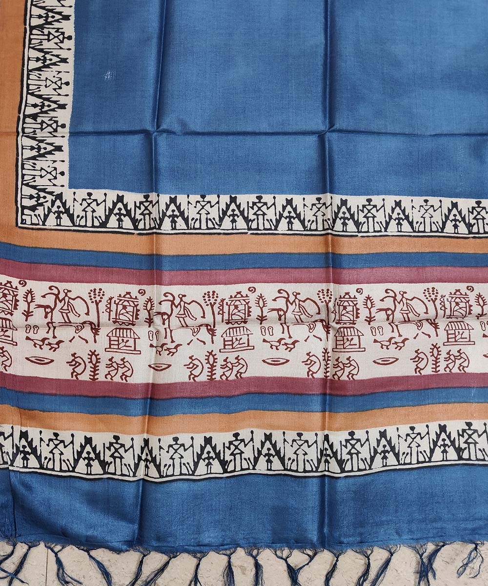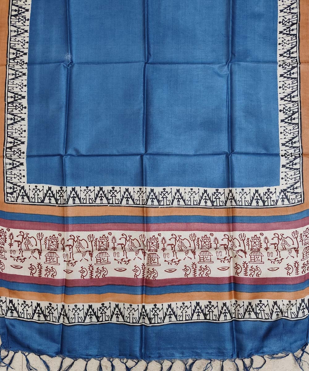 Blue Beige Handwoven Tussar Silk Dupatta SFTDUP1404