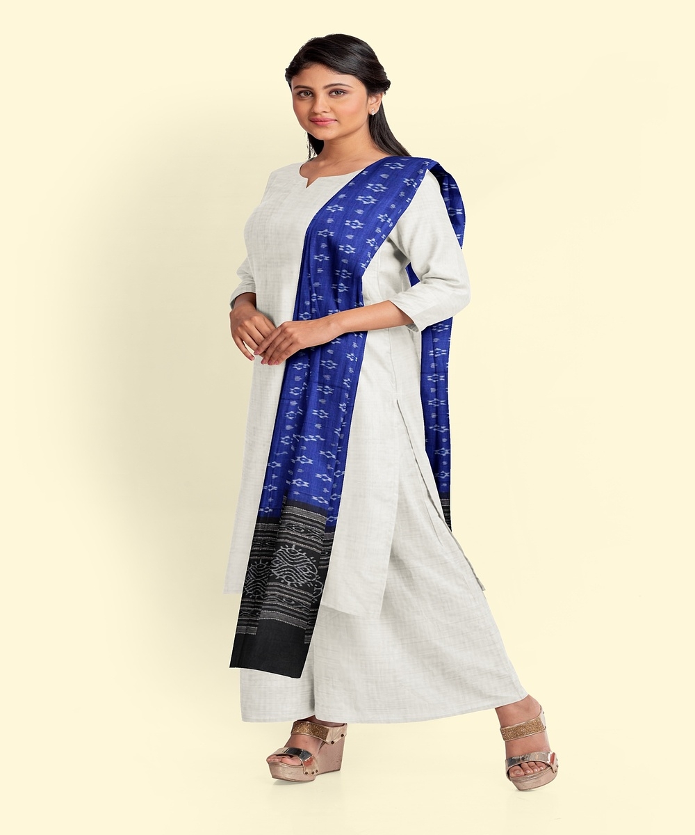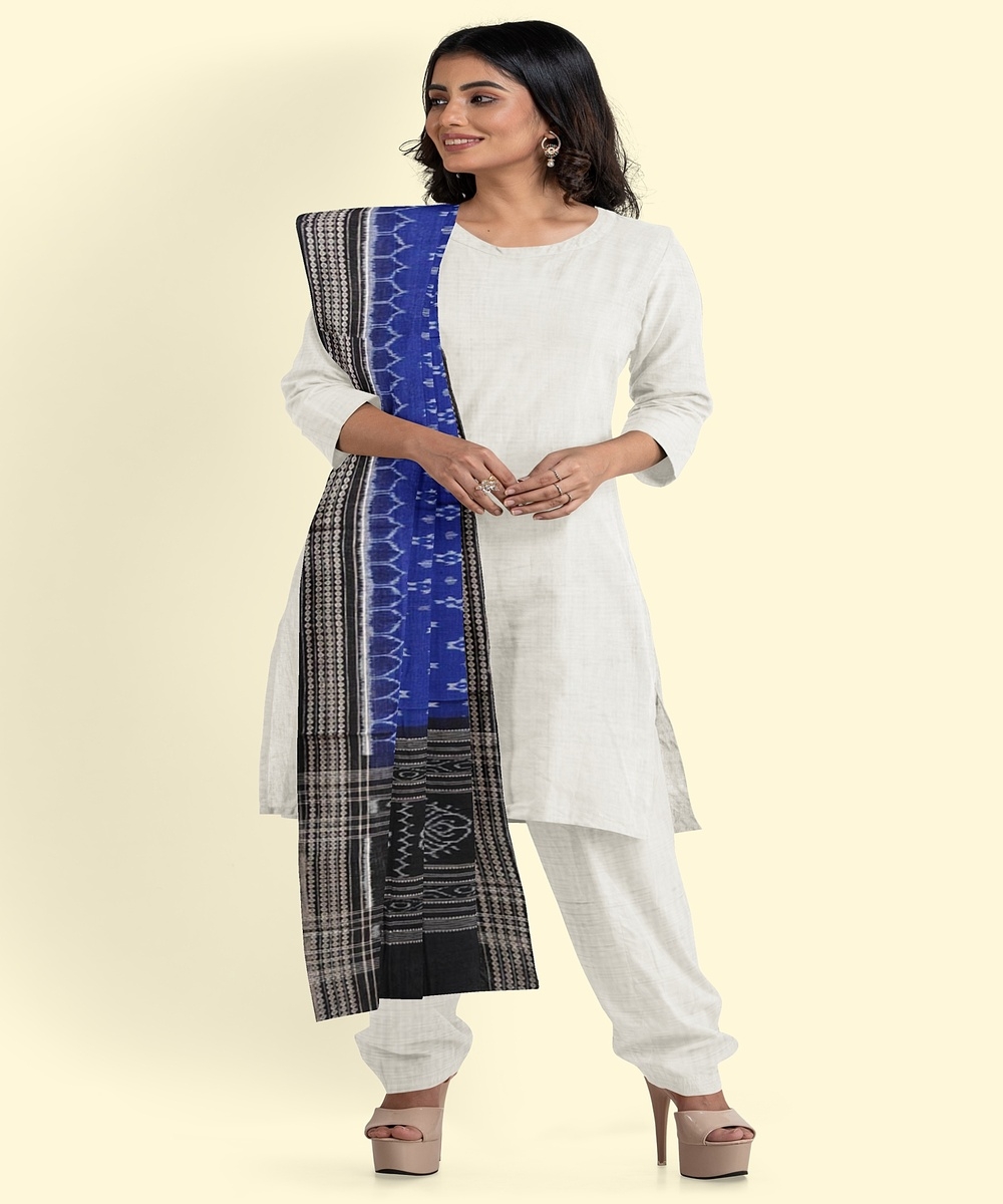 Blue Black Sambalpuri Handwoven Single Ikat Cotton Dupatta SFCDUP187A