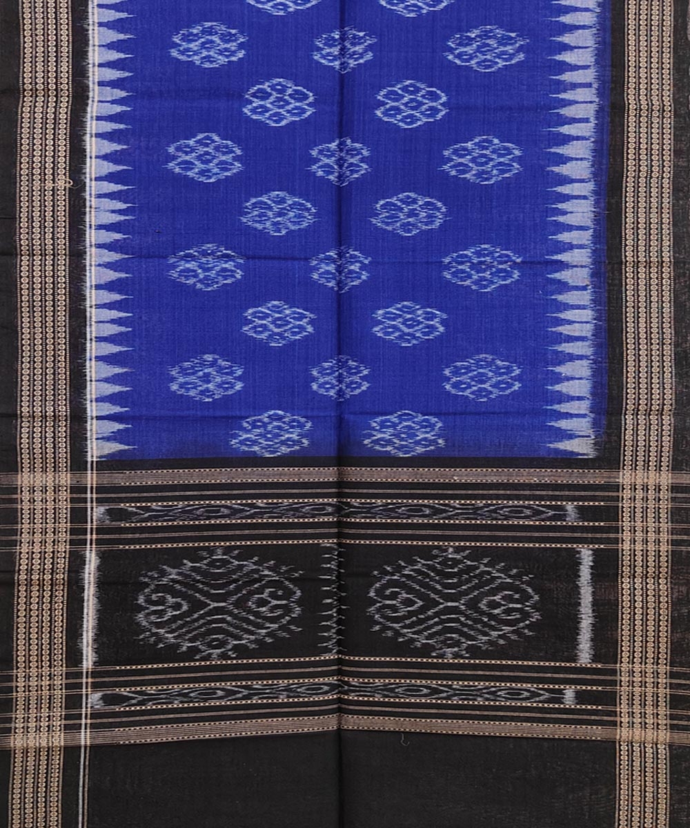 Blue Black Sambalpuri Handwoven Single Ikat Cotton Stole SFCSTL1734