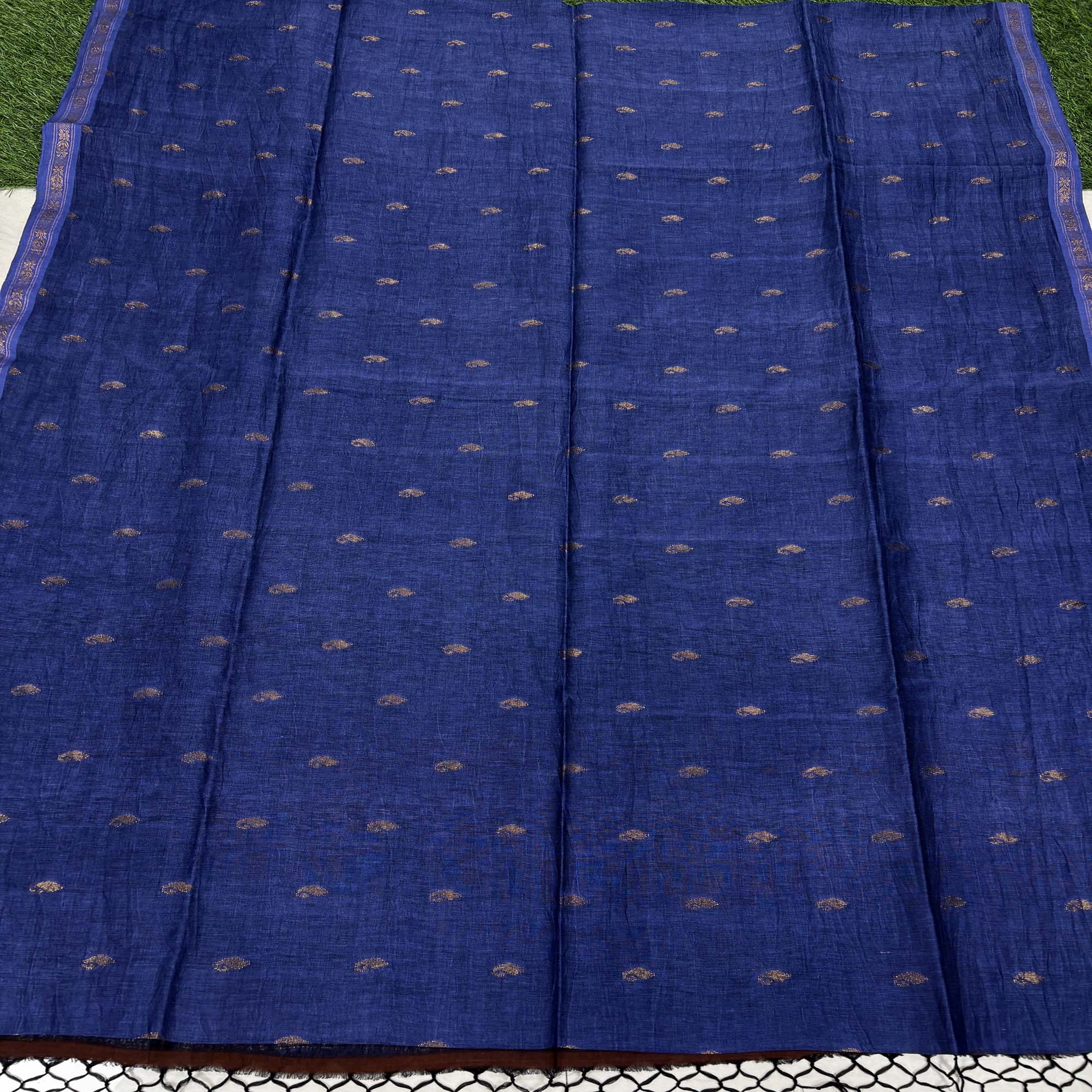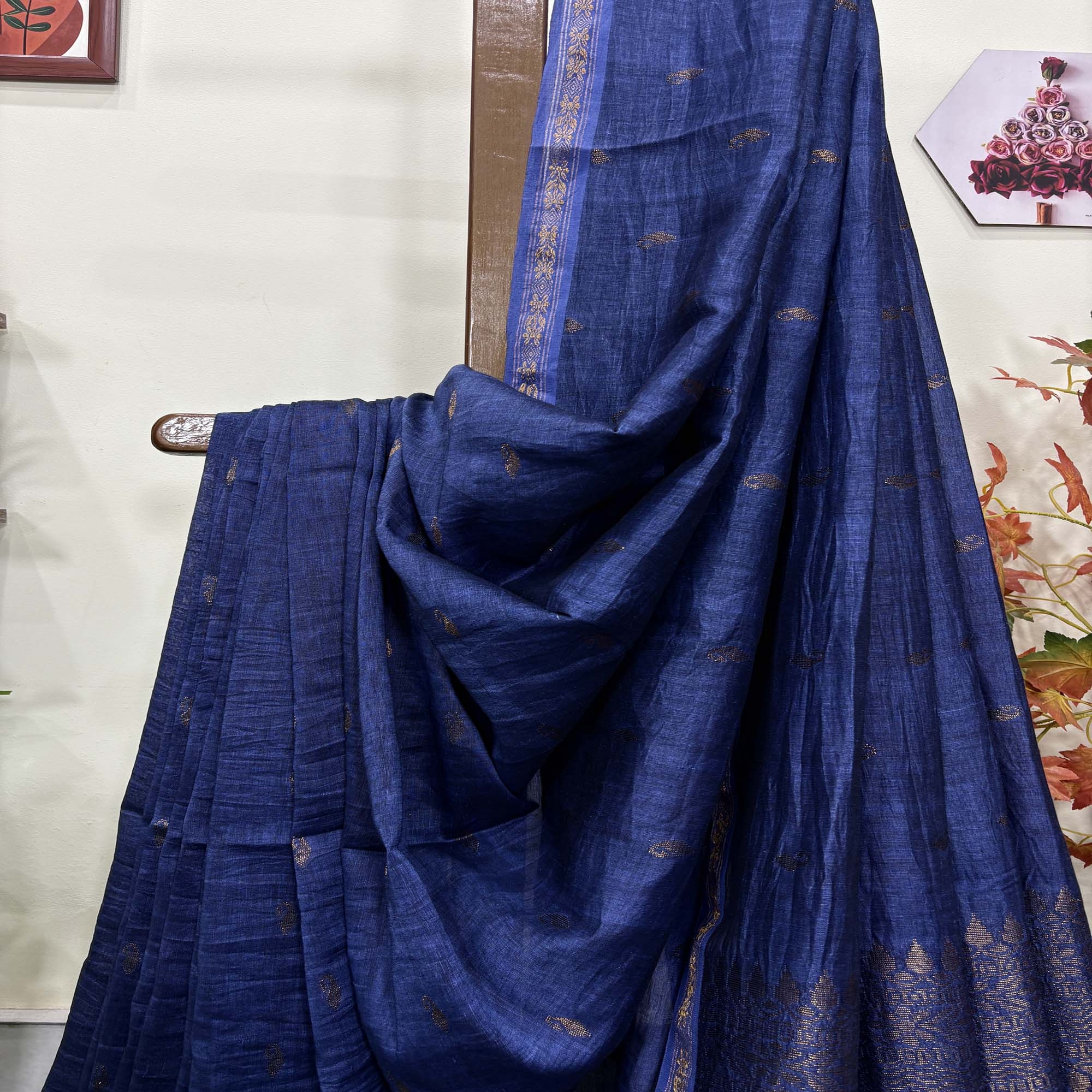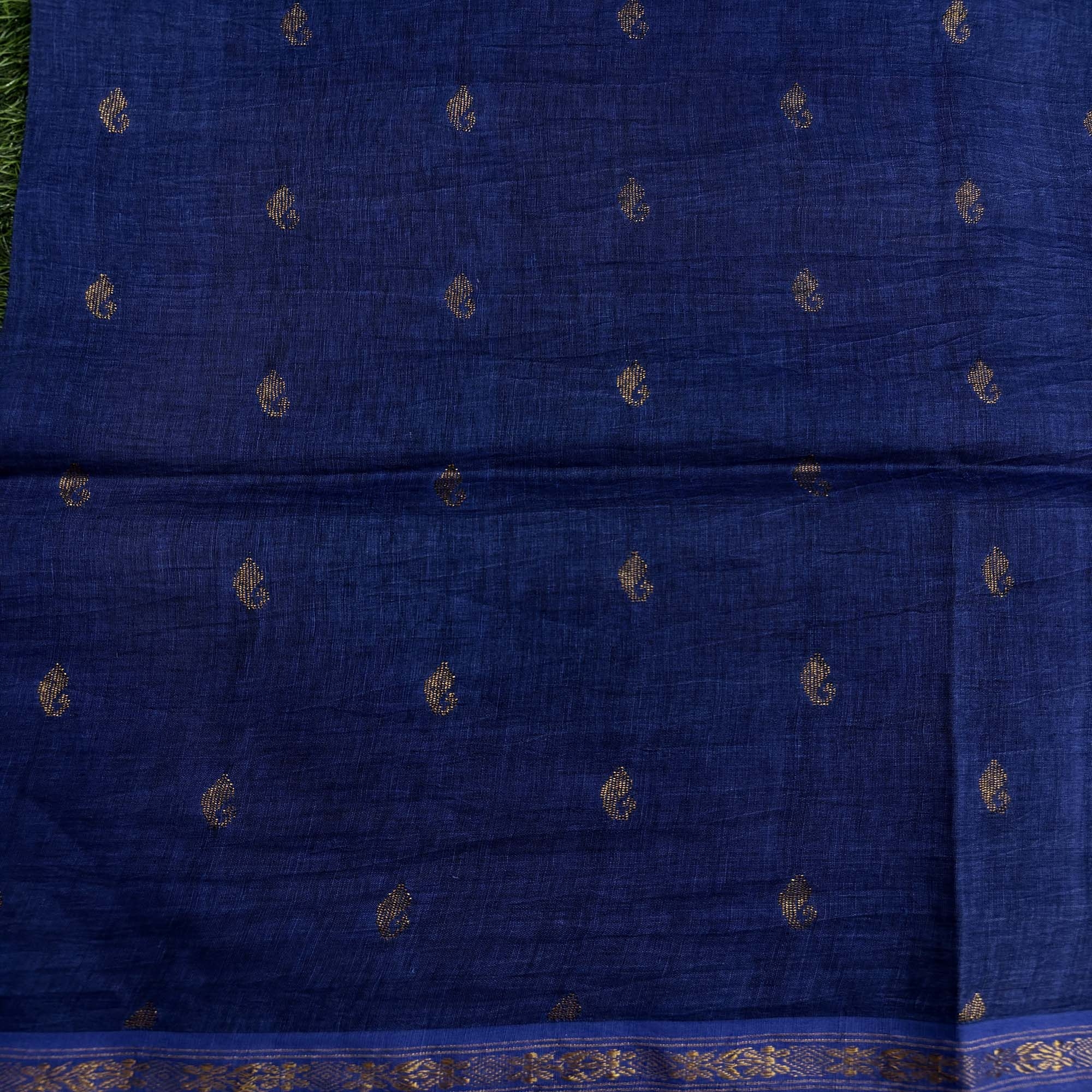 Blue Paisly Buta Organic Linen Jamdani Saree