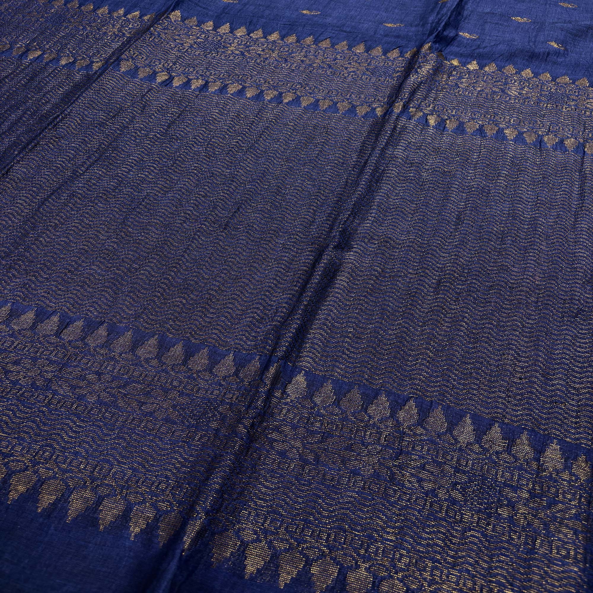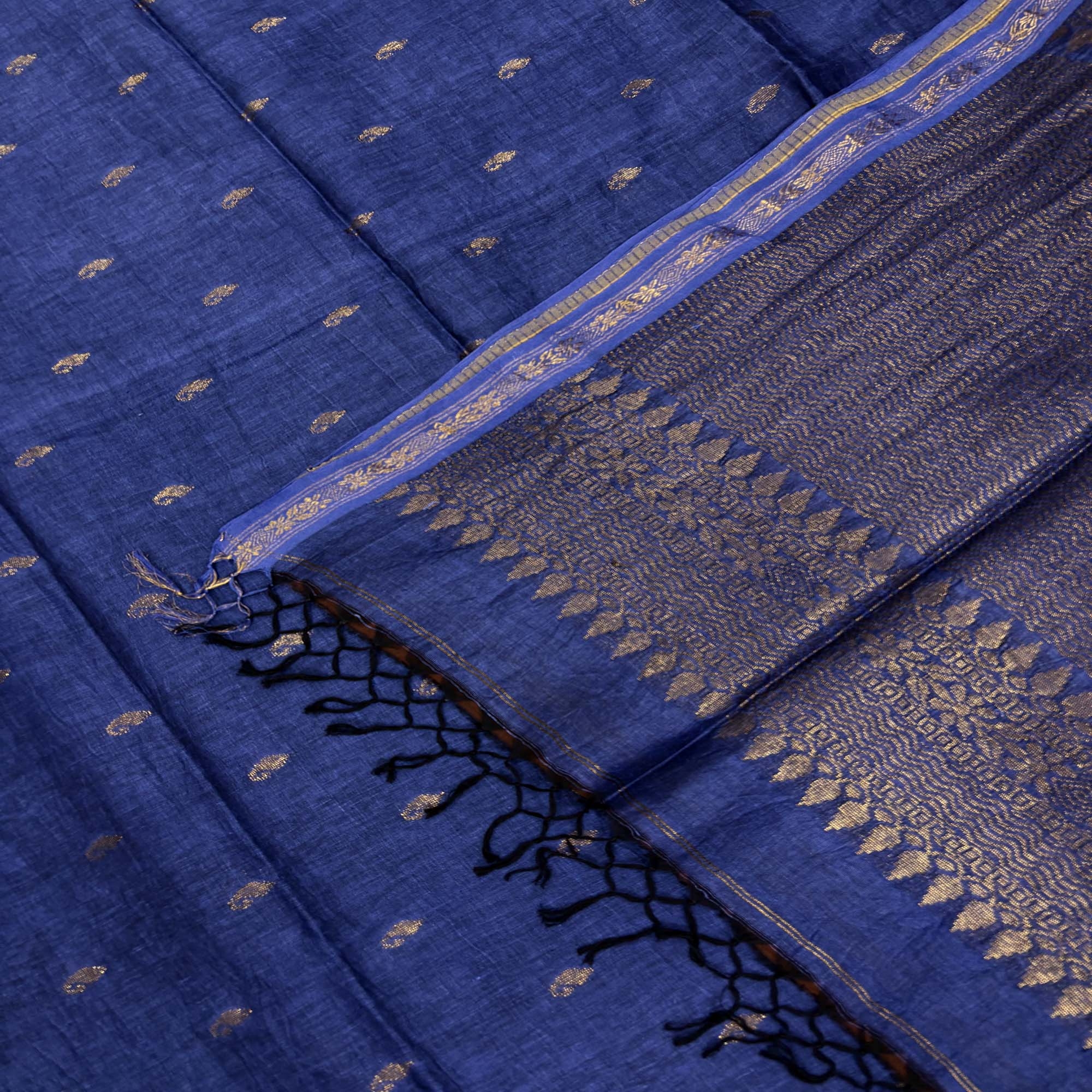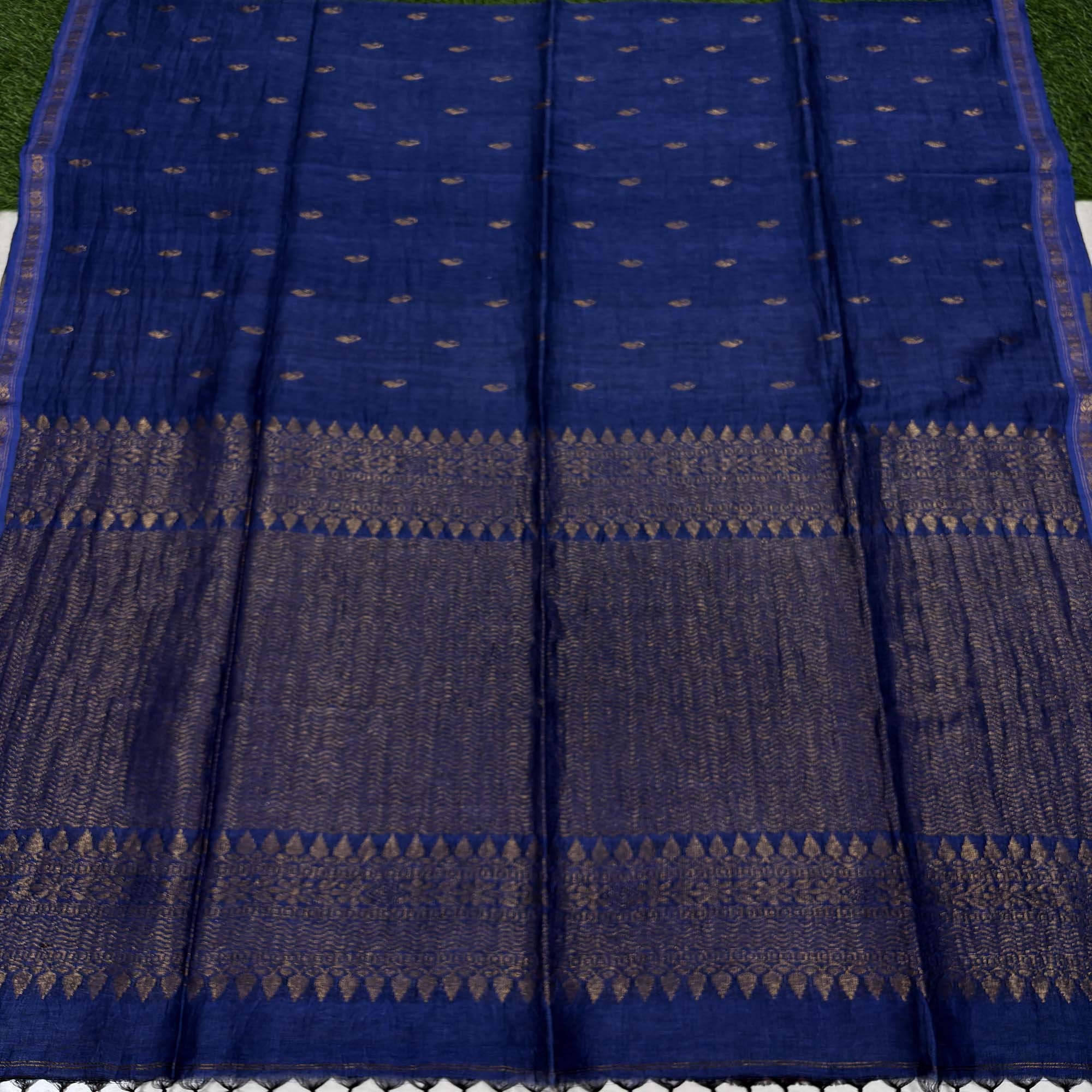 Blue Paisly Buta Organic Linen Jamdani Saree