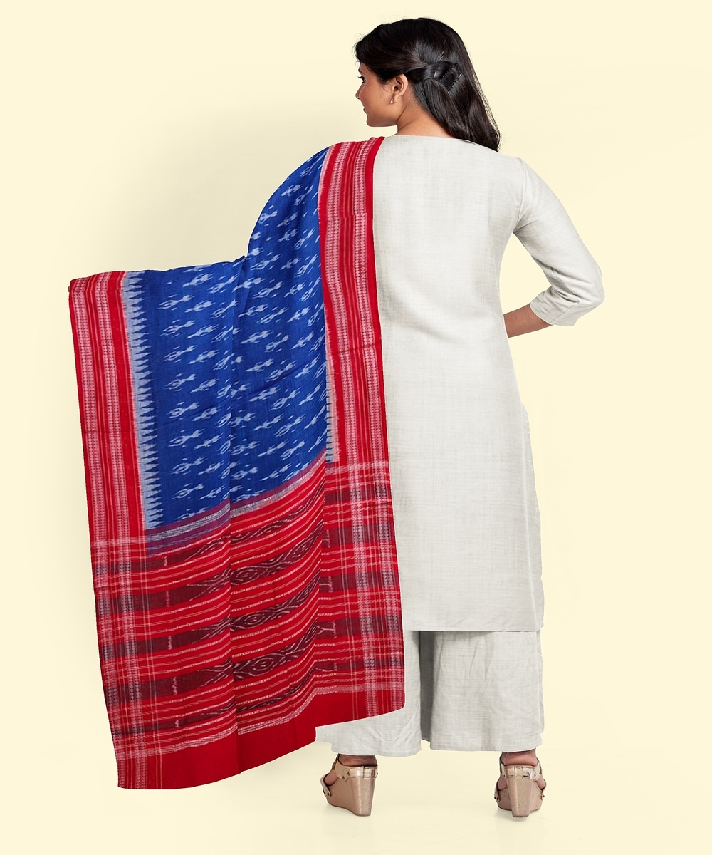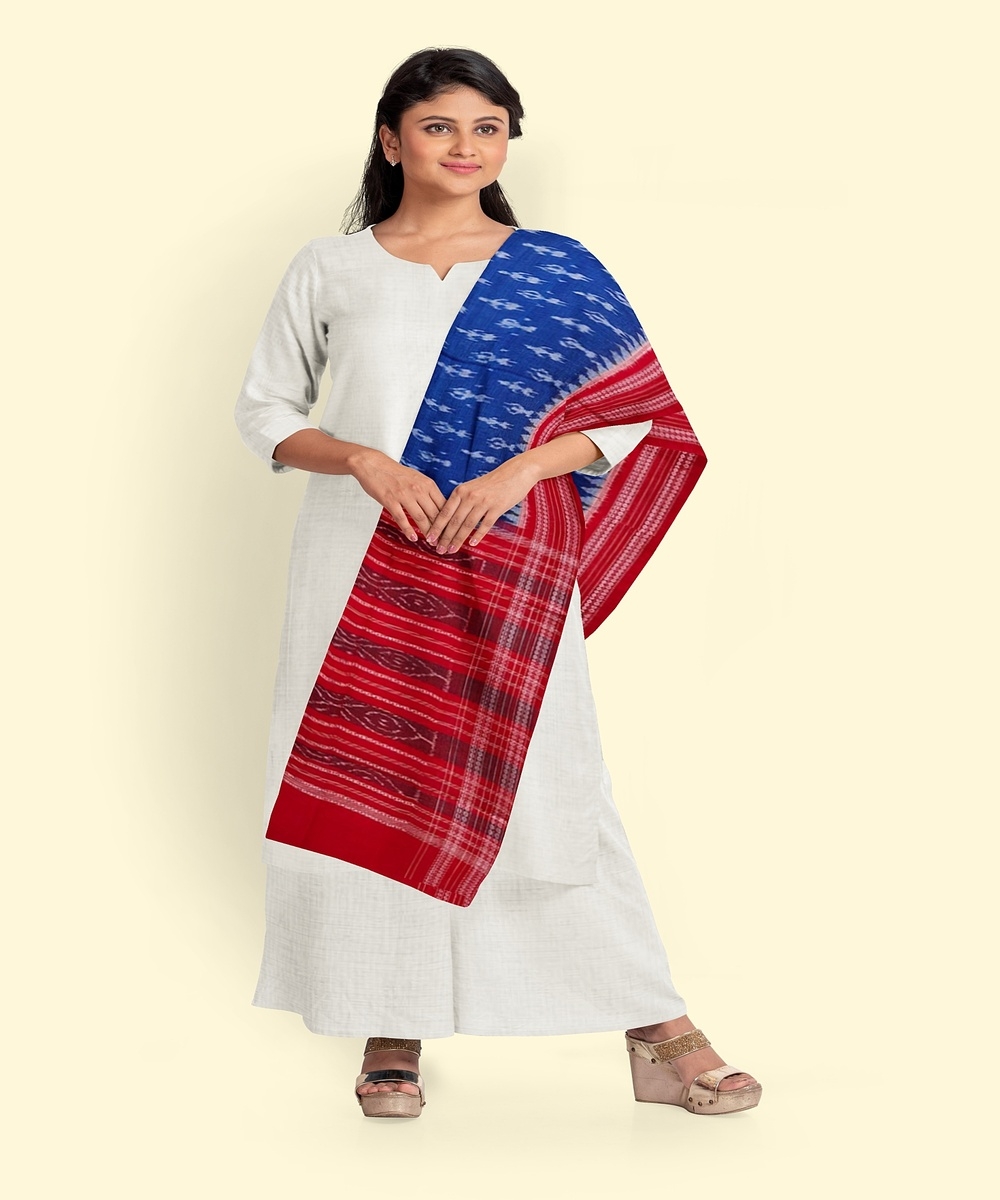 Blue Red Sambalpuri Handwoven Single Ikat Cotton Dupatta SFCDUP182A