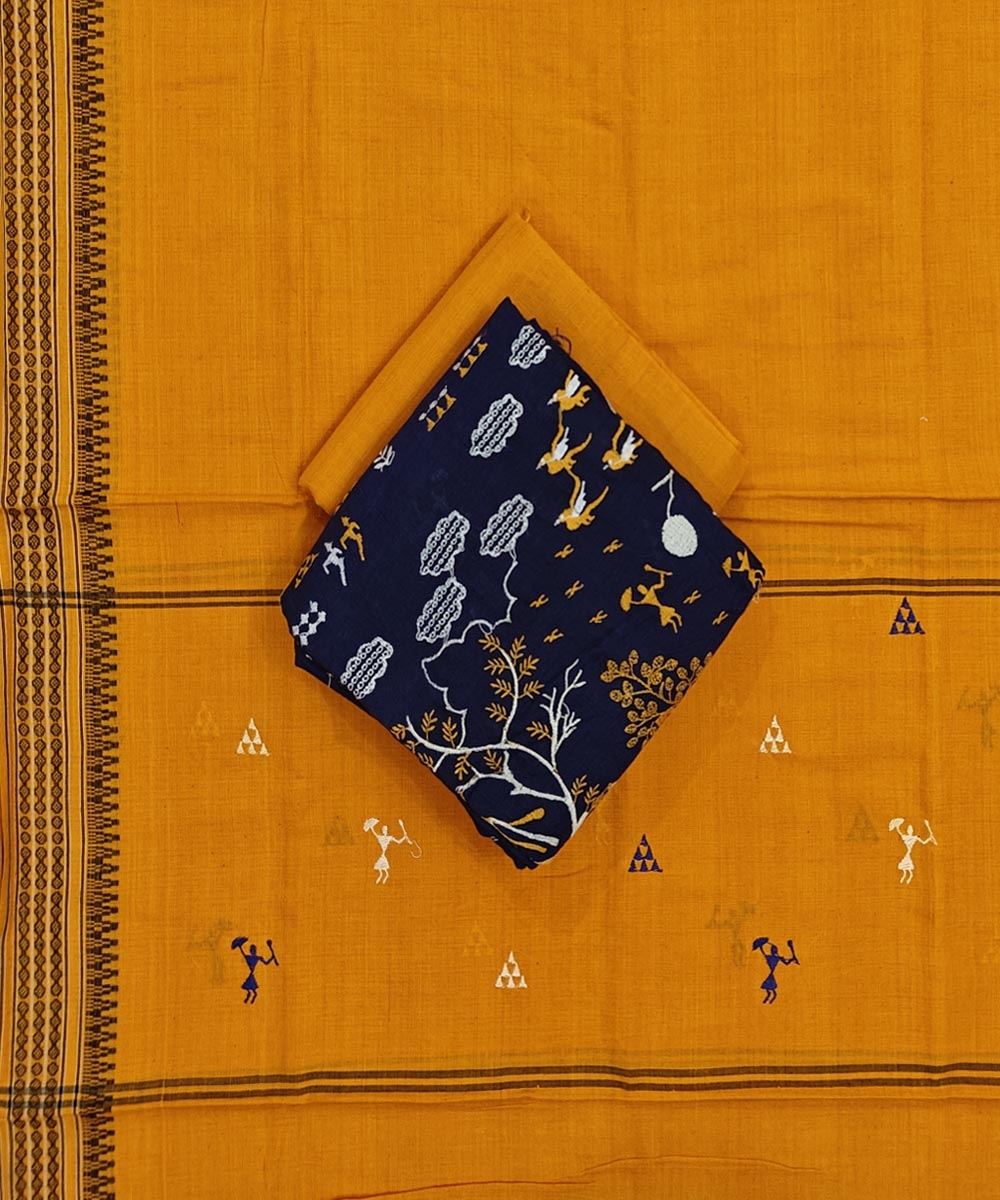 Blue Yellow Sambalpuri Handwoven Double Ikat Suit SFCSUT2331