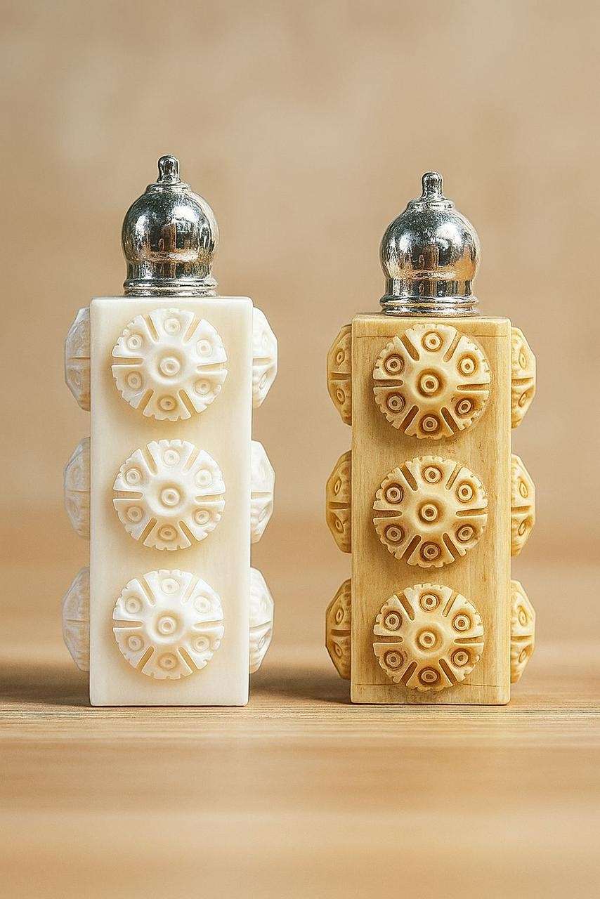 We are here to present a very unique and beautifull Handicrafted attra dani made with bone and designt with digging work on it with two colour varint.