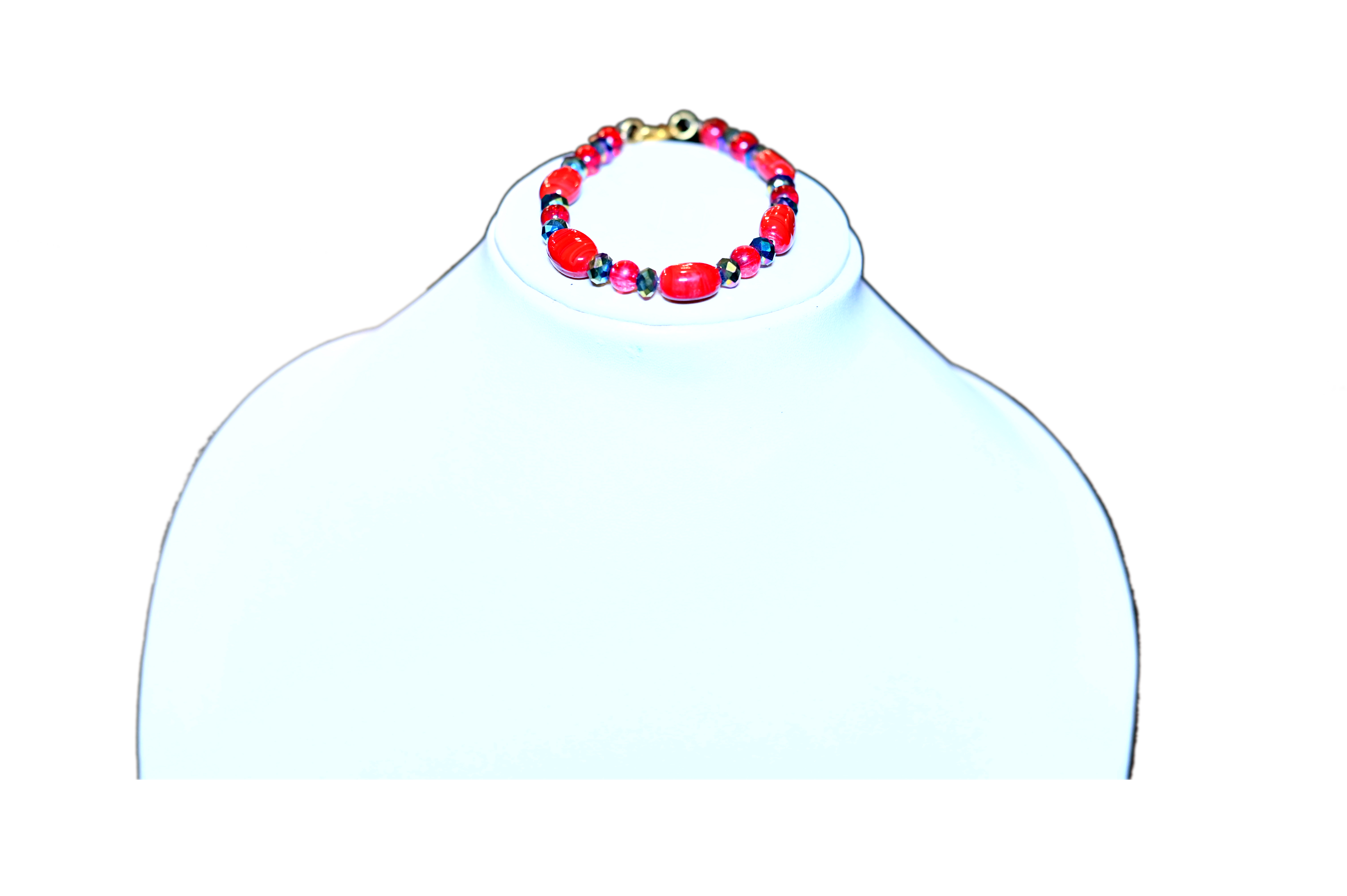 RED AND MULTI BRACELET WITH ARTIFICIAL BEADS