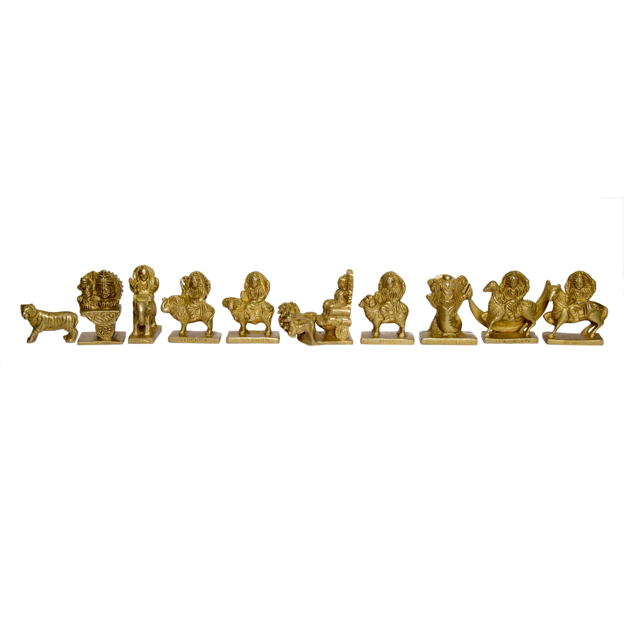 Design: Beautifully handcrafted brass idols representing the 9 celestial deities (Navgrahas) — Sun, Moon, Mars, Mercury, Jupiter, Venus, Saturn, Rahu, and Ketu — symbolizing balance and harmony in life.