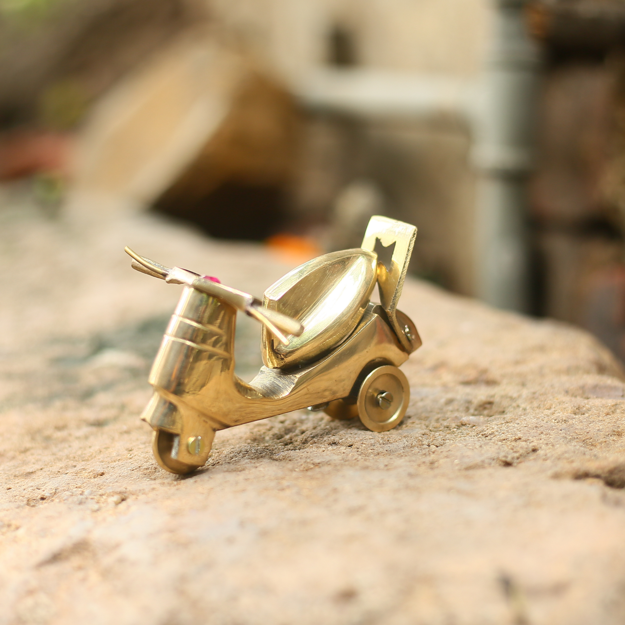 Beautifully crafted Brass Activa Scooter model featuring intricate detailing and a shiny brass finish. Perfect as a decorative collectible or a thoughtful gift for vehicle enthusiasts.