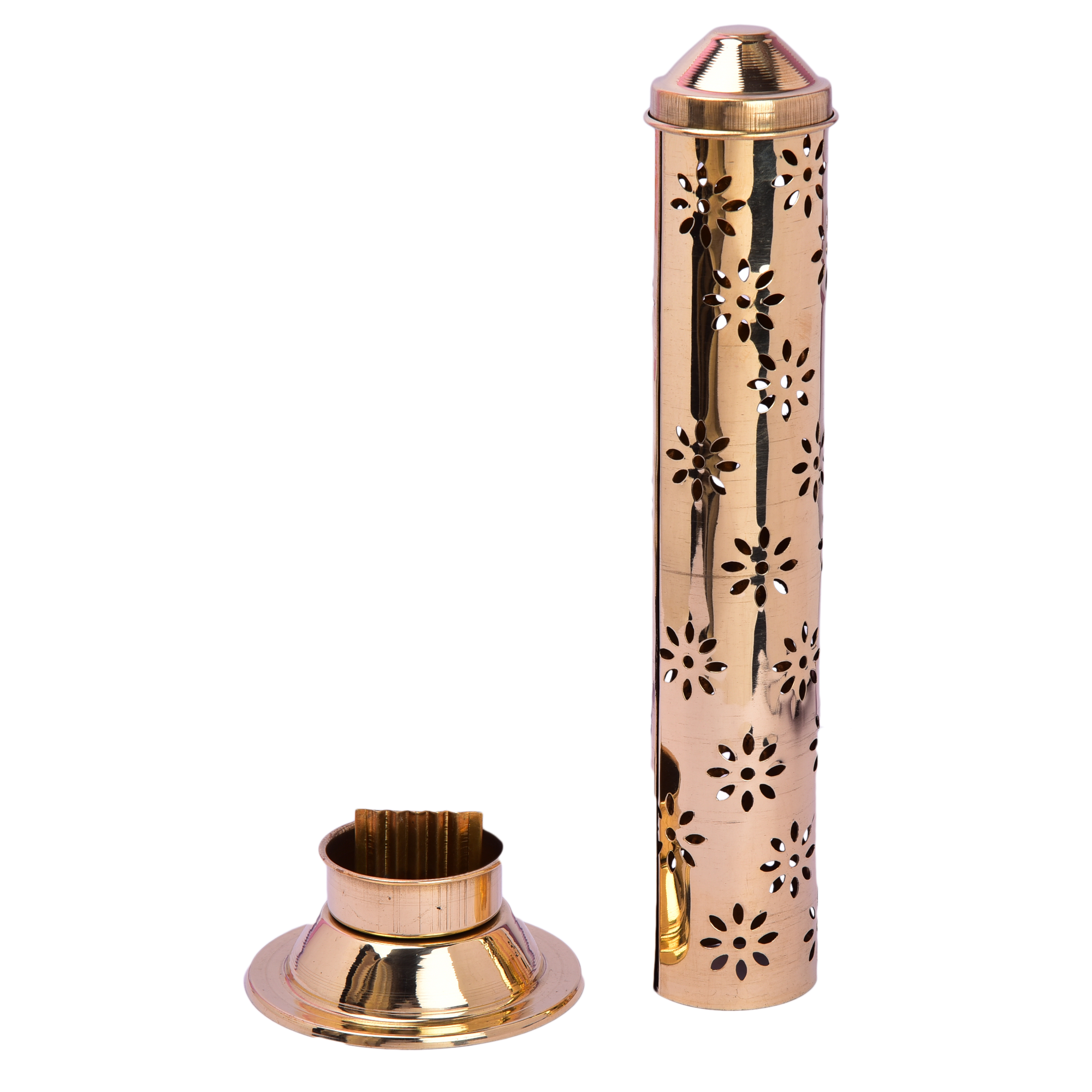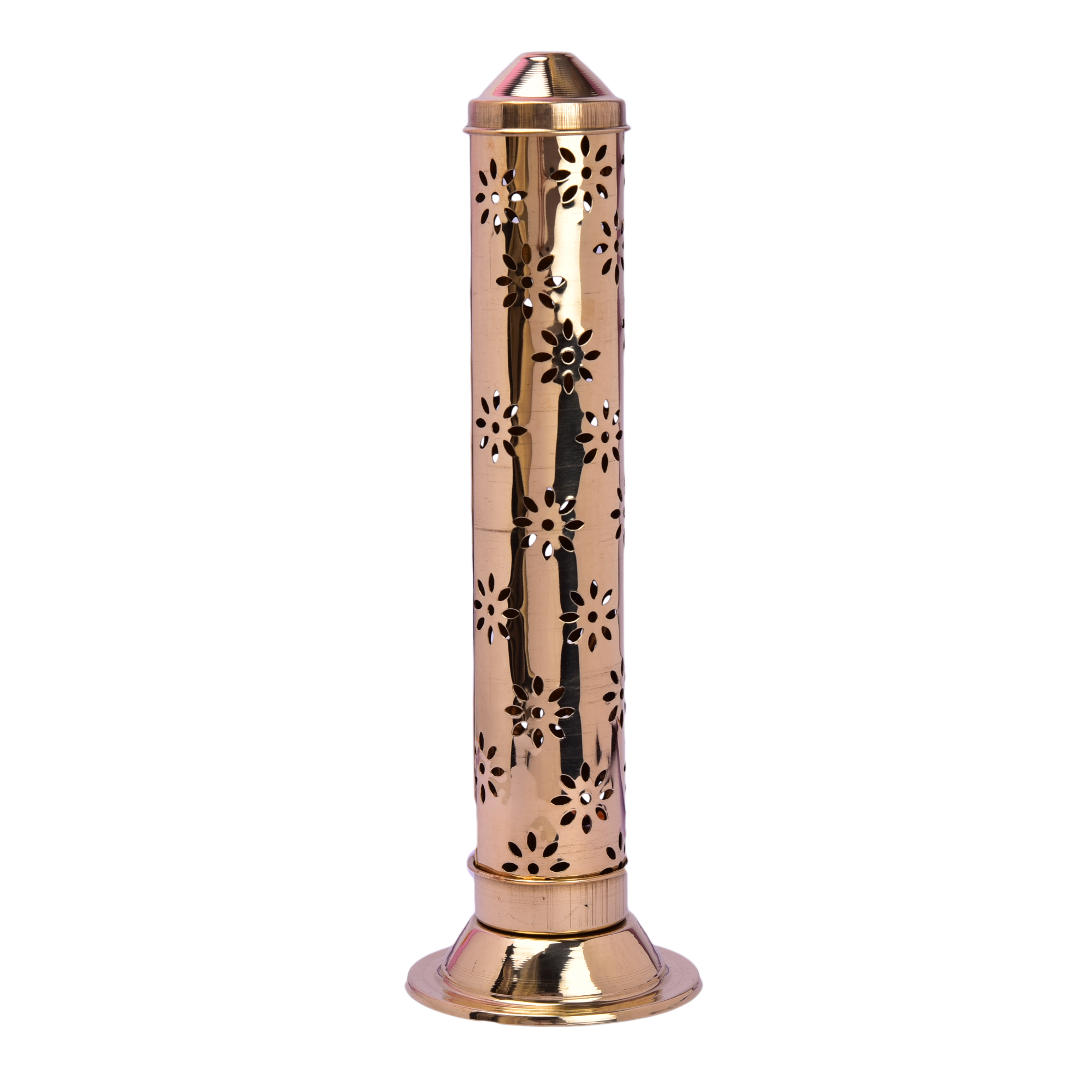 Design: Tall cylindrical incense stand with stable circular base for safe ash collection.
