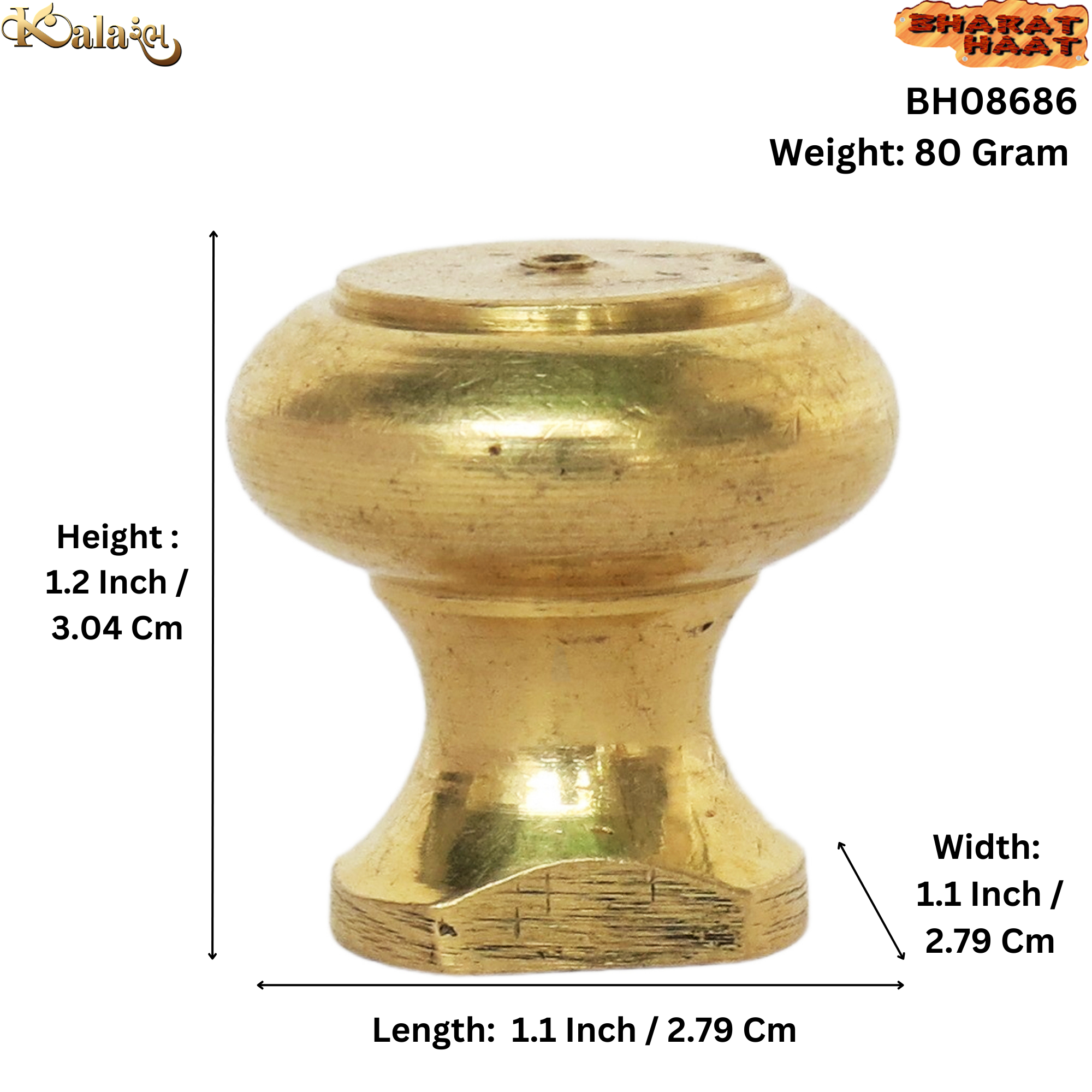 Measuring 1.1 x 0.8 x 1.2 inches (2.79 x 2.03 x 3.04 cm) and weighing 80 grams, this compact yet sturdy handle is ideal for small furniture or decorative projects. The smooth finish and intricate detailing reflect the skill of Indian artisans, giving your furniture a polished and refined look.