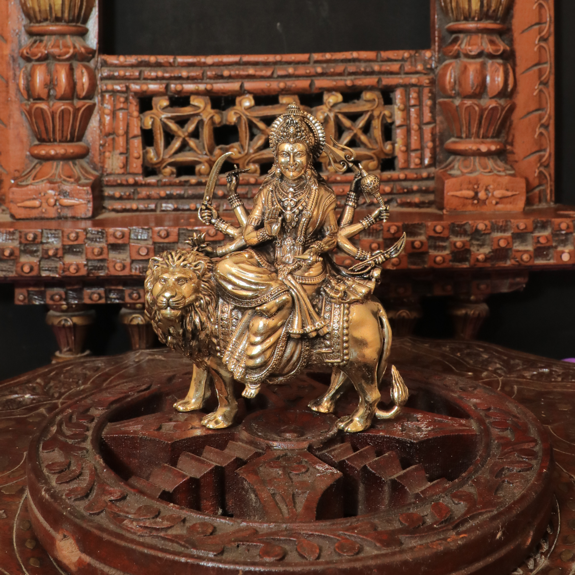 Intricate Craftsmanship – Finely detailed brass idol capturing the divine essence of Ambe Maa.