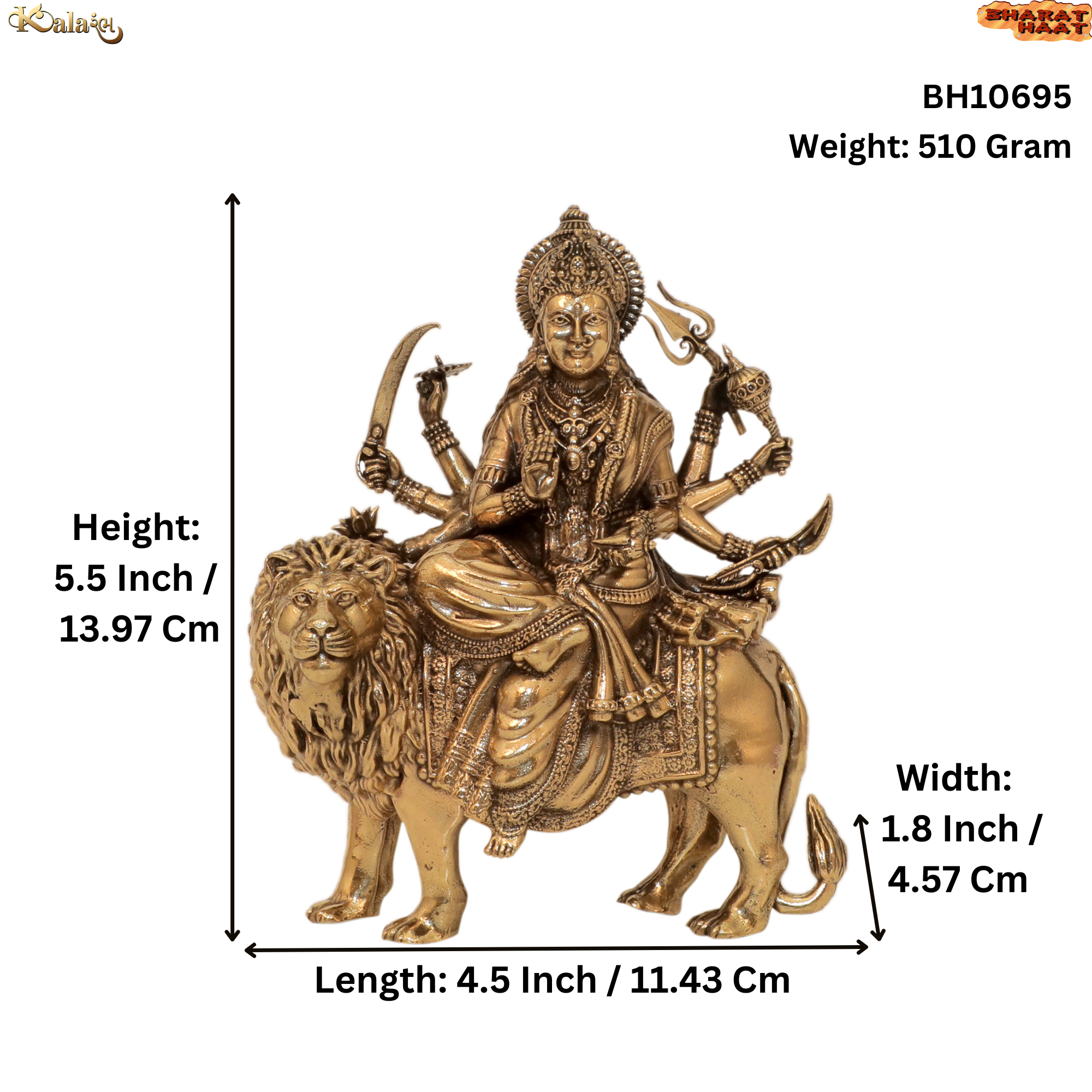 Beautifully handcrafted Brass Ambe Maa Idol – 4.5 x 1.8 x 5.5 inches, weighing 510 grams. Ideal for pooja, meditation, or as a decorative piece representing faith and devotion.