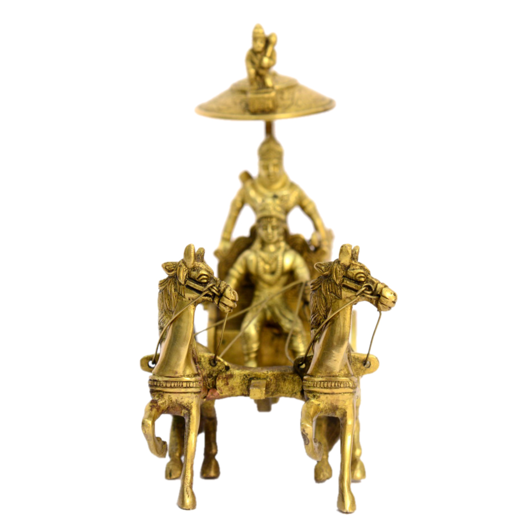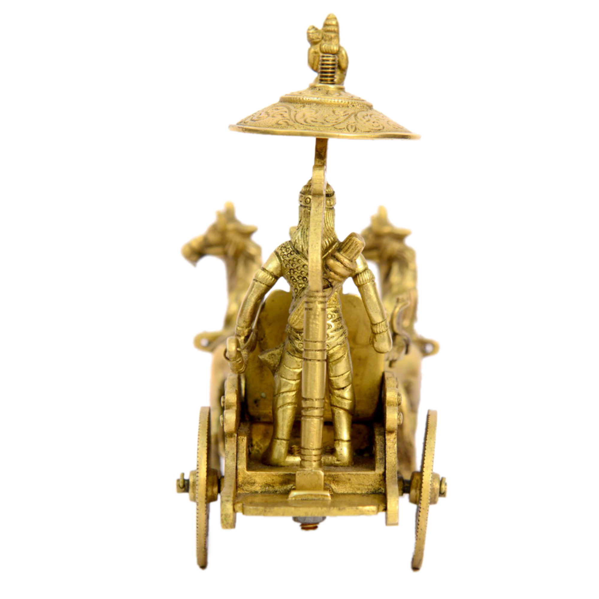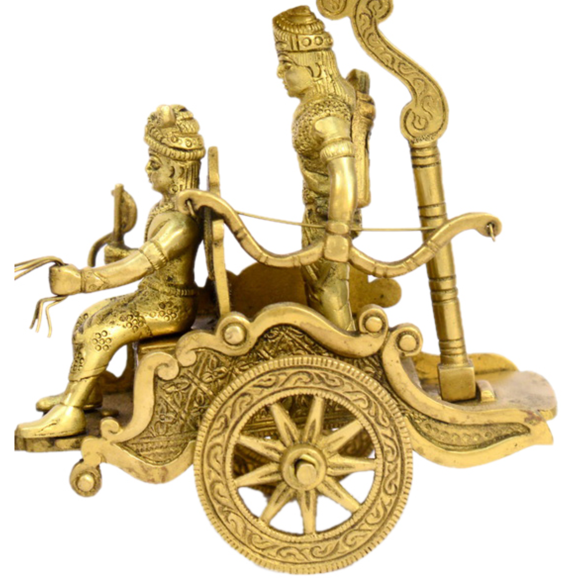 Design: Features a finely detailed brass chariot with Lord Arjun figurine, showcasing traditional craftsmanship and epic Mahabharata-inspired artistry.