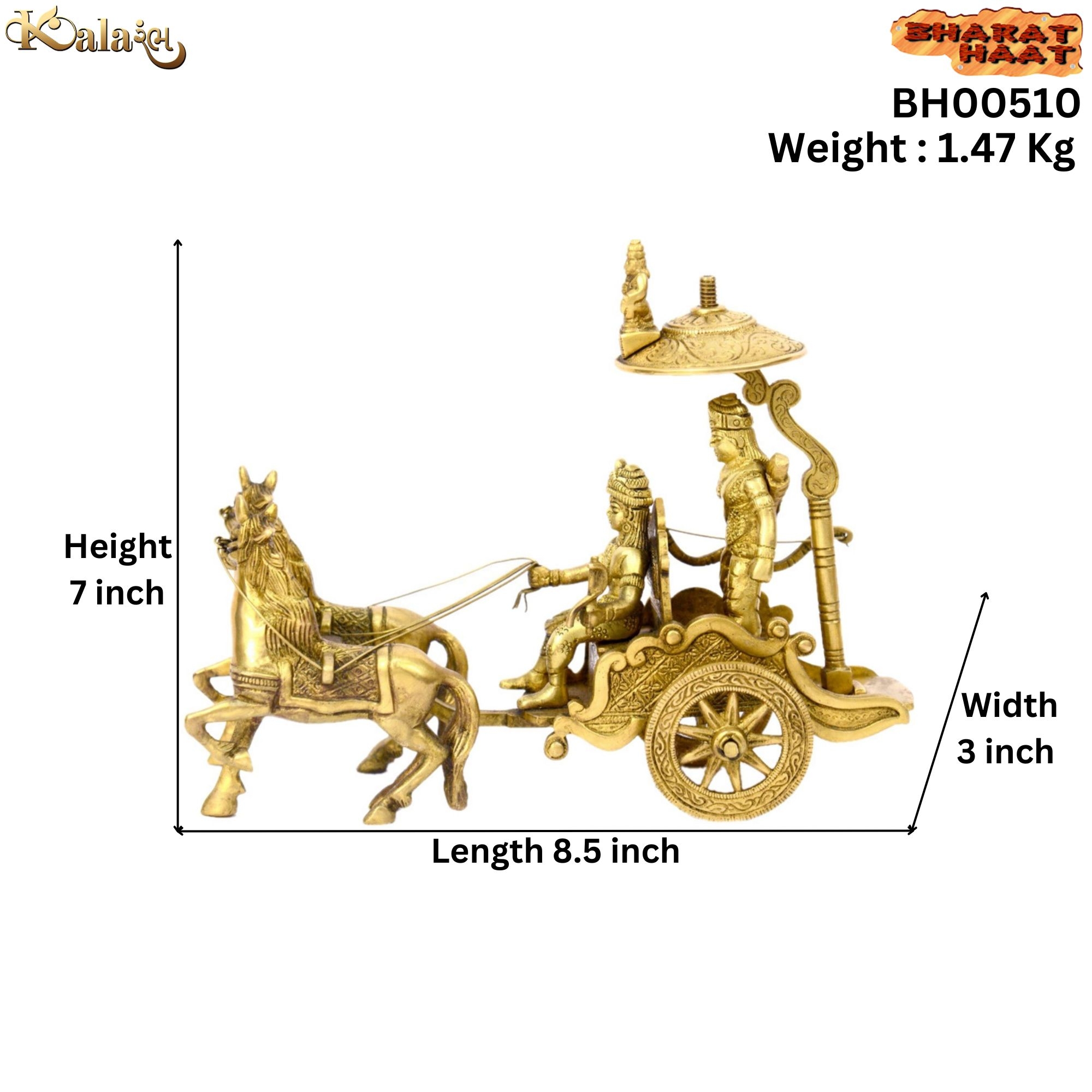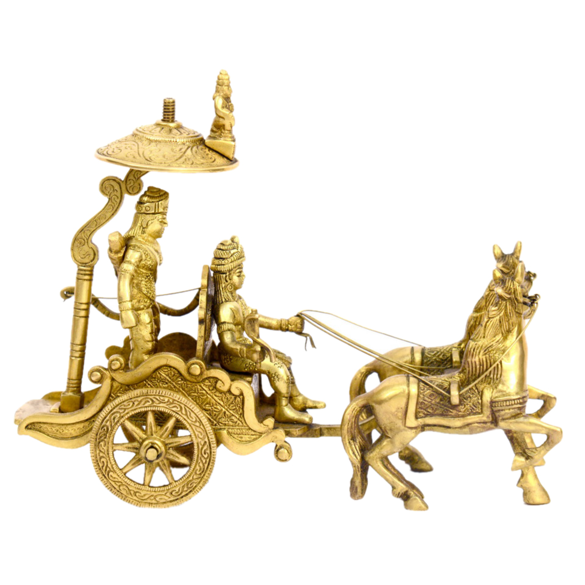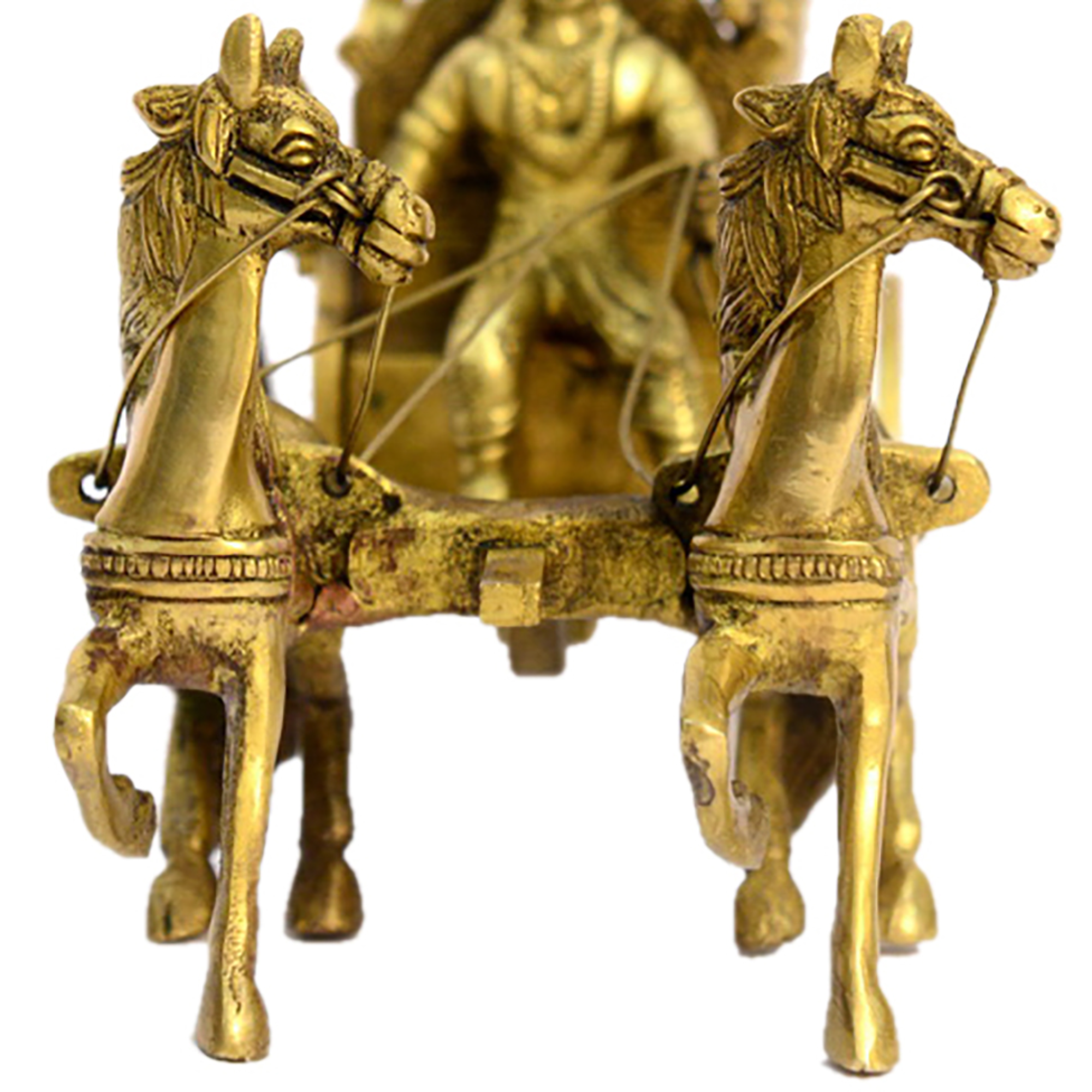 Design: Features a finely detailed brass chariot with Lord Arjun figurine, showcasing traditional craftsmanship and epic Mahabharata-inspired artistry.