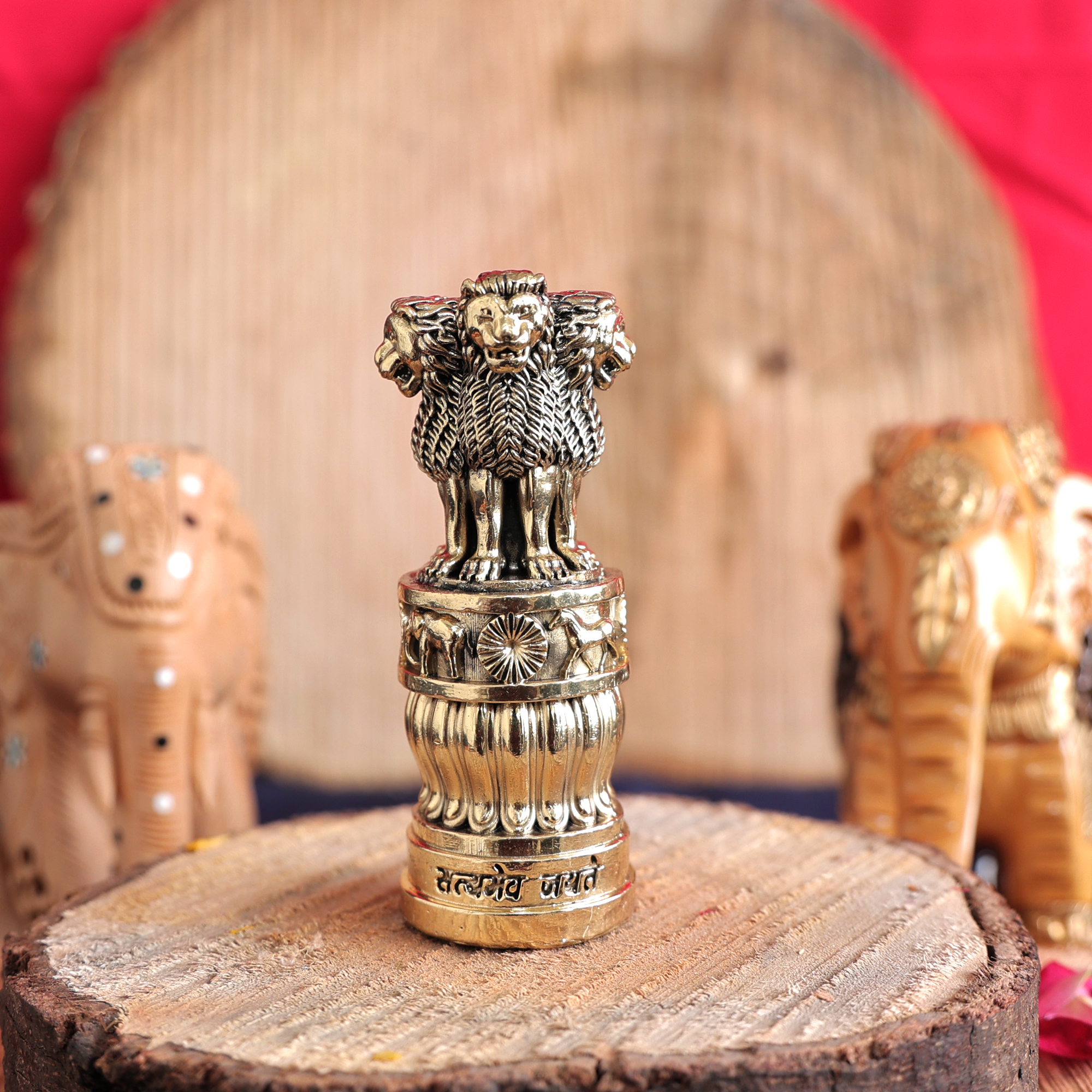 Decorative Brass Ashoka Stambh, 1 Pc, size 1.4 x 1.4 x 4 Inch, 145g. Perfect for desks, shelves, or as a patriotic gift.