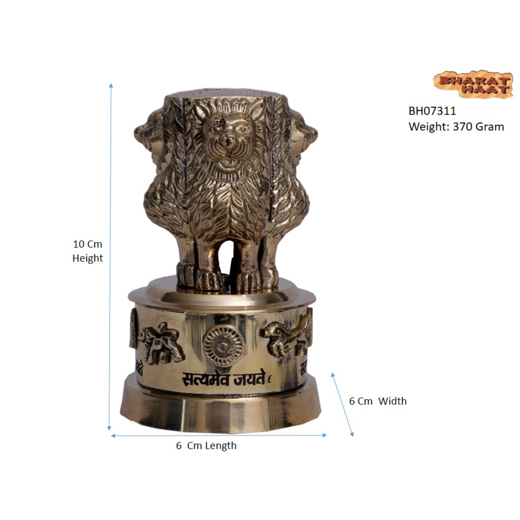 Beautifully handcrafted small Brass Ashoka Stambh with dimensions 2.5 x 2.5 x 4.1 Inch and weight 370 grams. Perfect for office décor, gifting, and patriotic collections.