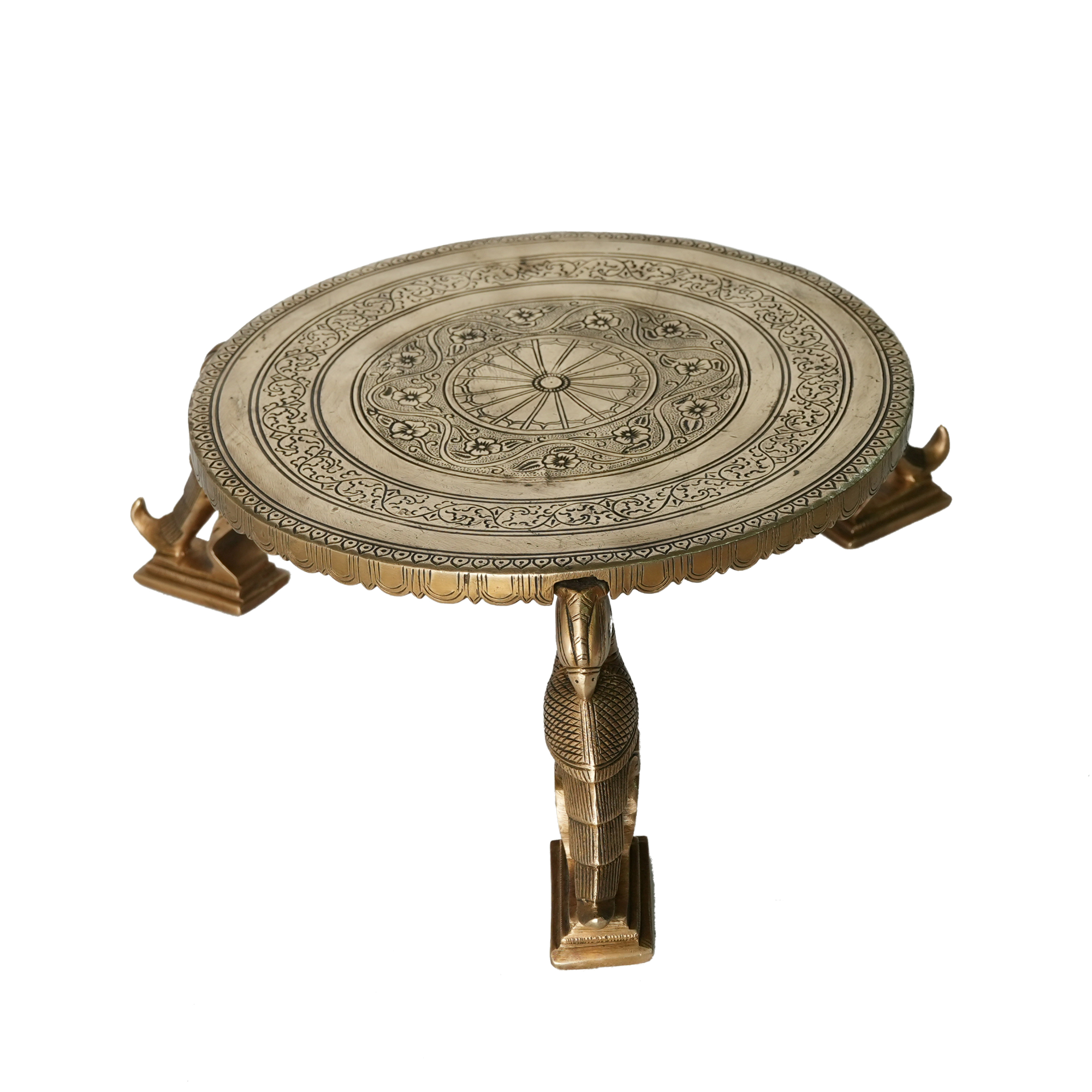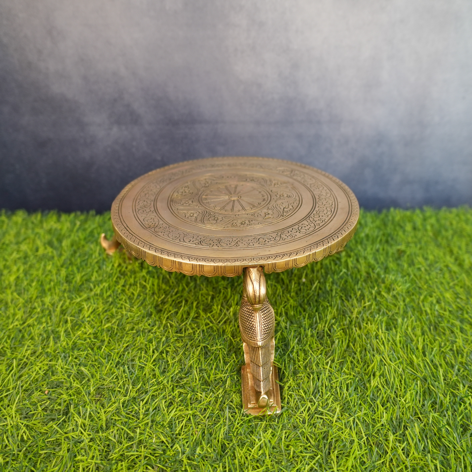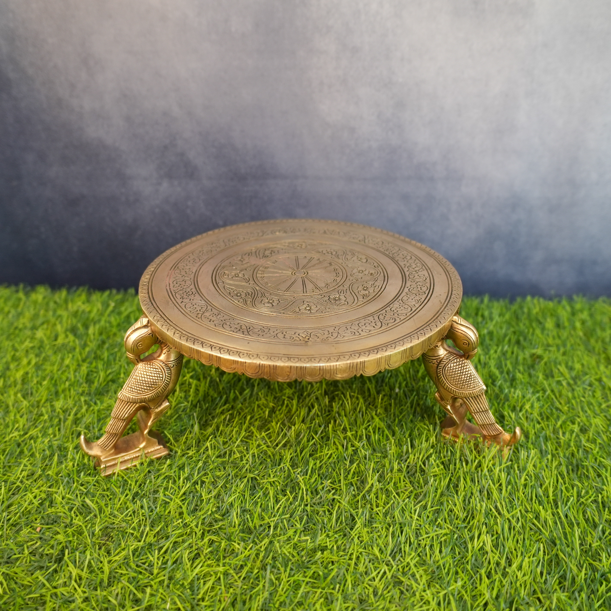 designed for pooja rituals and home décor. Made from premium quality solid brass, this heavy-duty chowki (bajot) provides a divine and stable base for idols, diyas, or religious offerings during worship.