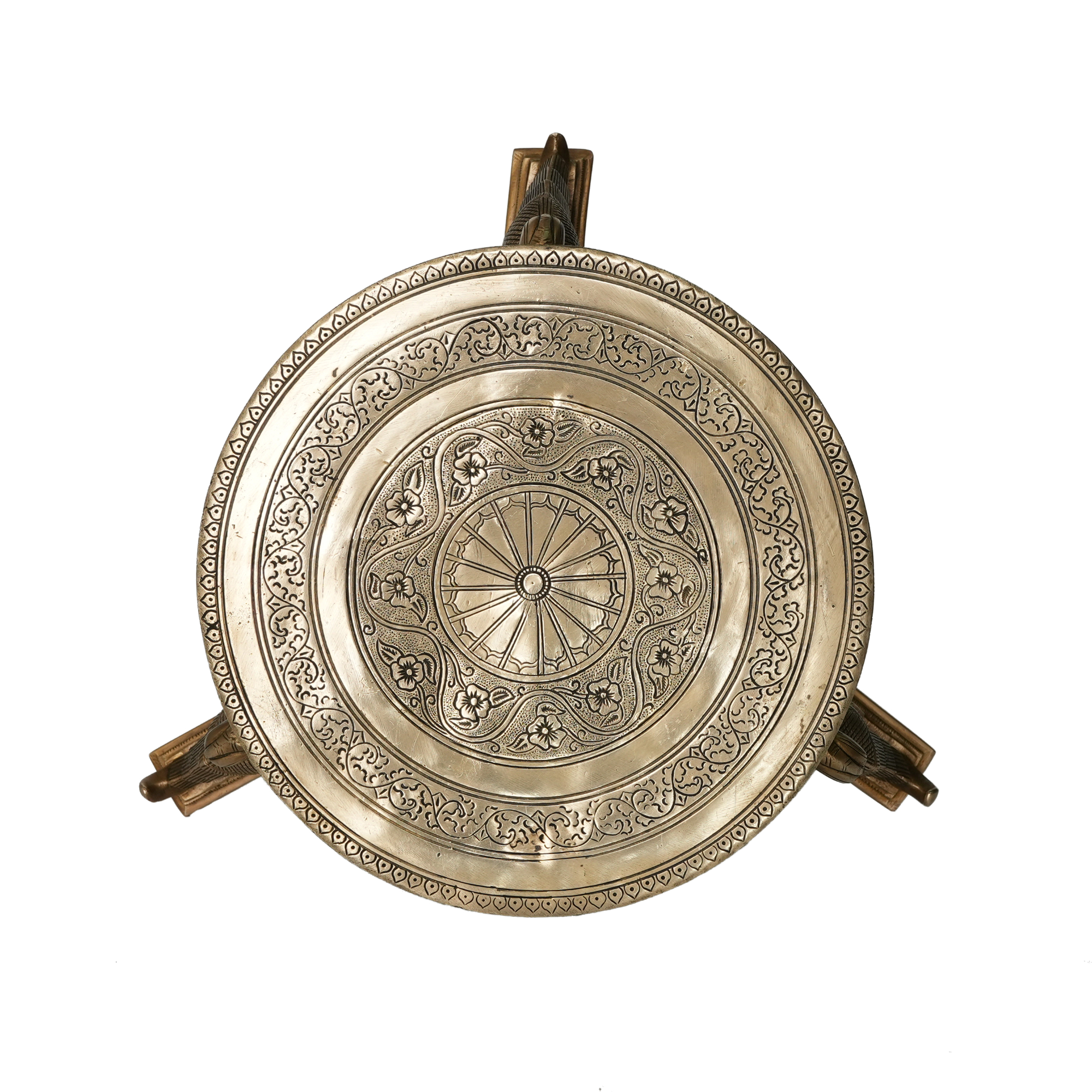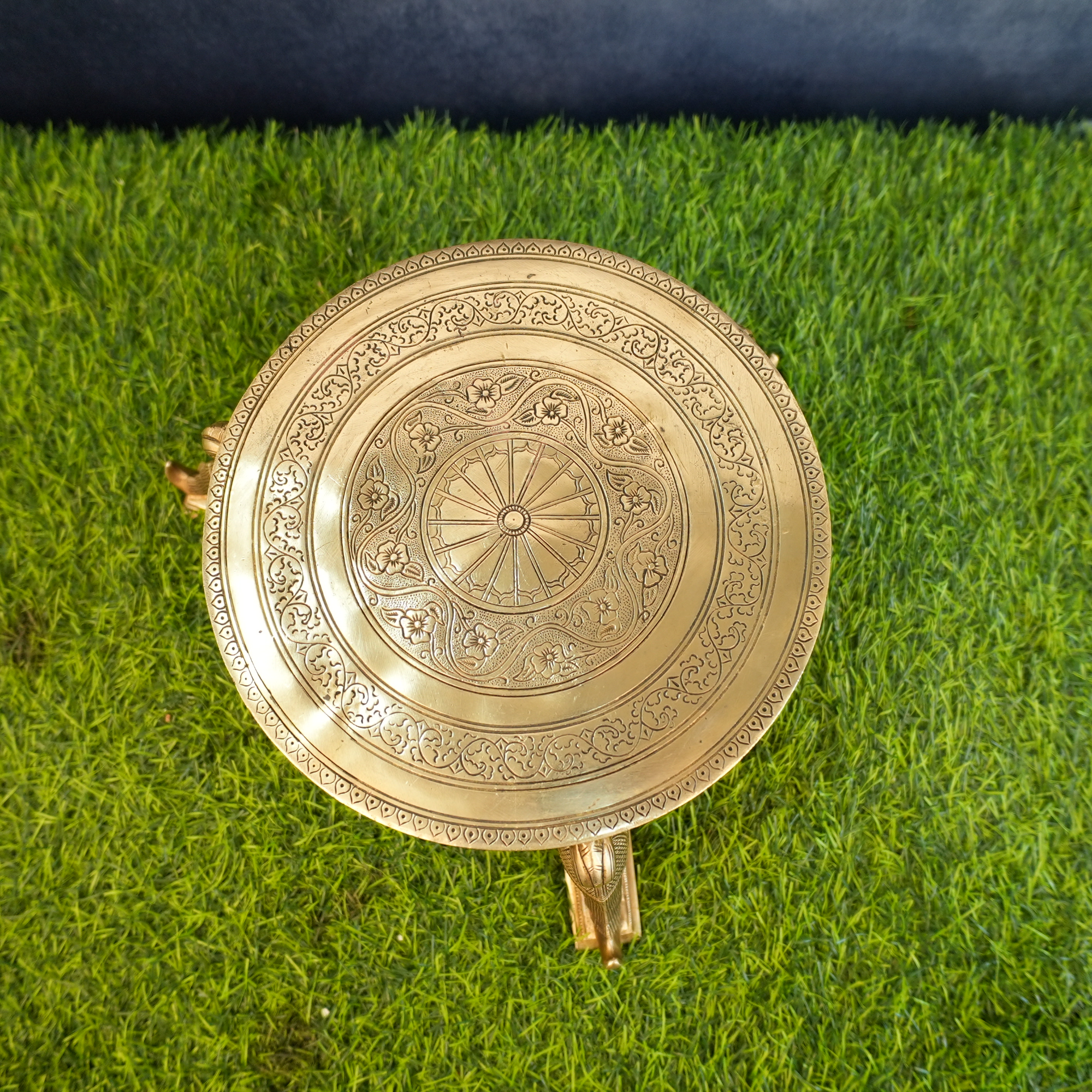 With a size of 13 x 10.5 x 4.8 Inch (33.02 x 26.67 x 12.19 cm) and a weight of 4.67 Kg, this brass bajath stands out for its robust structure and elegant antique finish. The intricate hand-engraved patterns reflect skilled Indian craftsmanship, adding a royal touch to your temple décor.