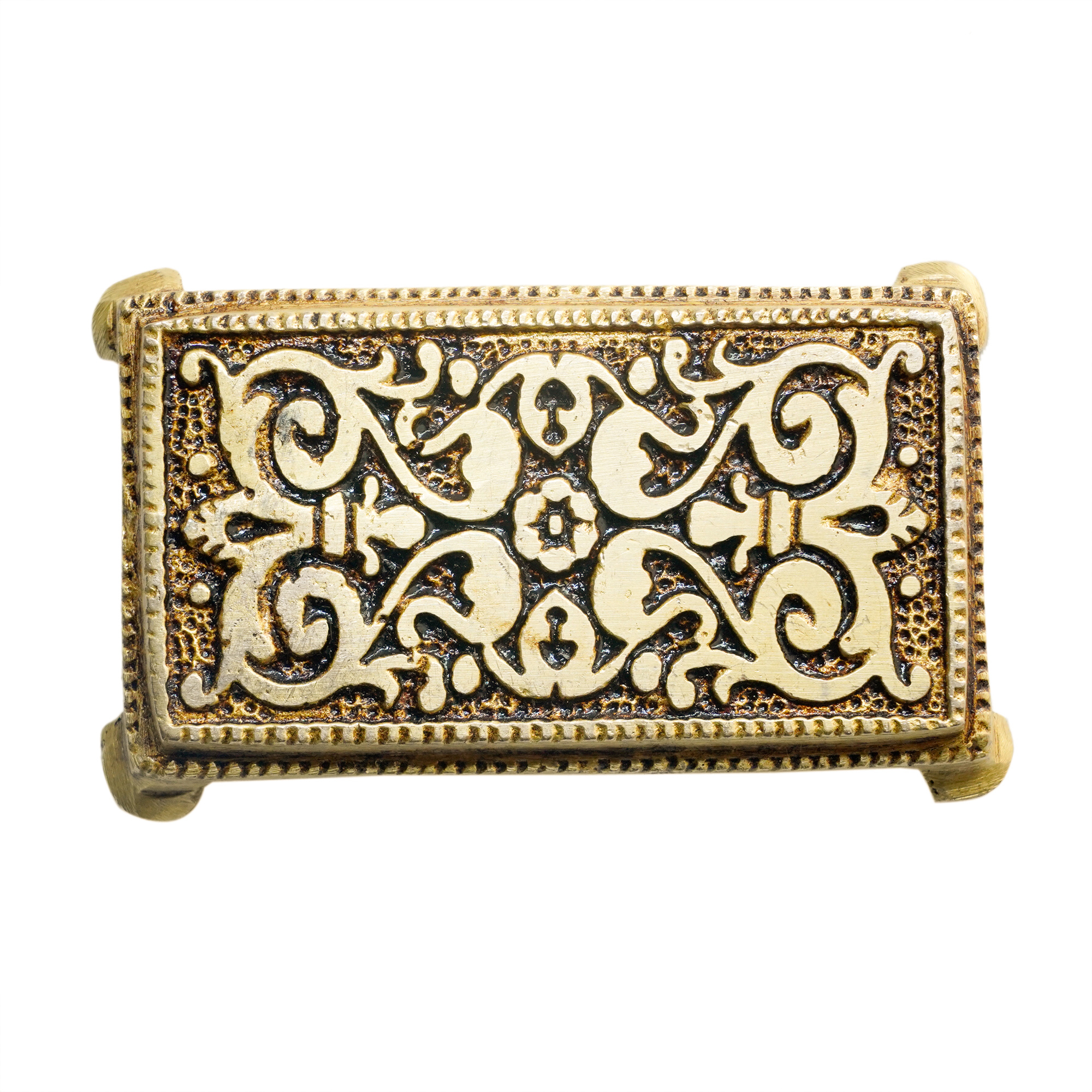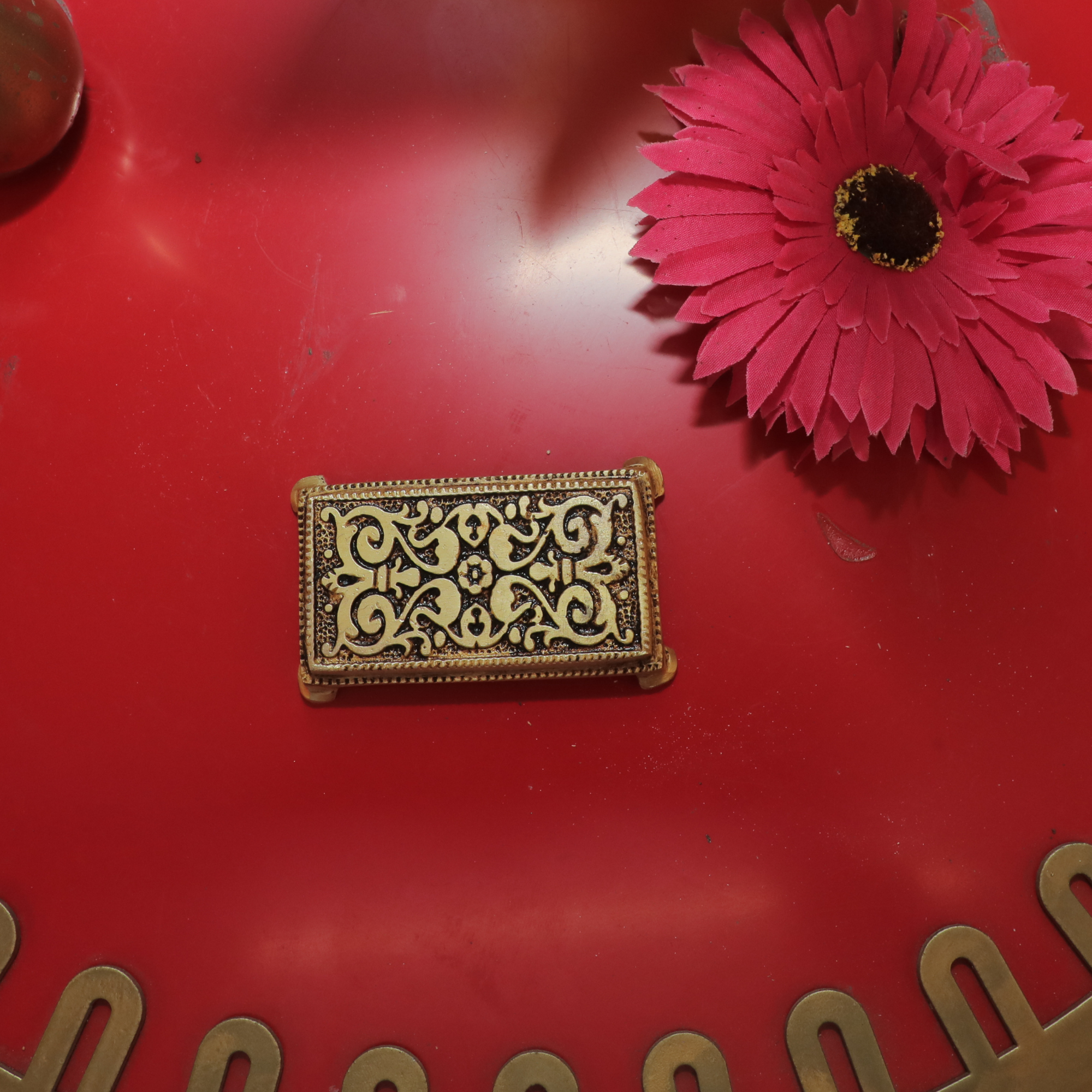 Beautifully handcrafted Brass Bajath measuring 3.2 x 2 x 0.2 inches and weighing 148g. Ideal as a pooja chowki or decorative base for small idols, diyas, or spiritual setups.