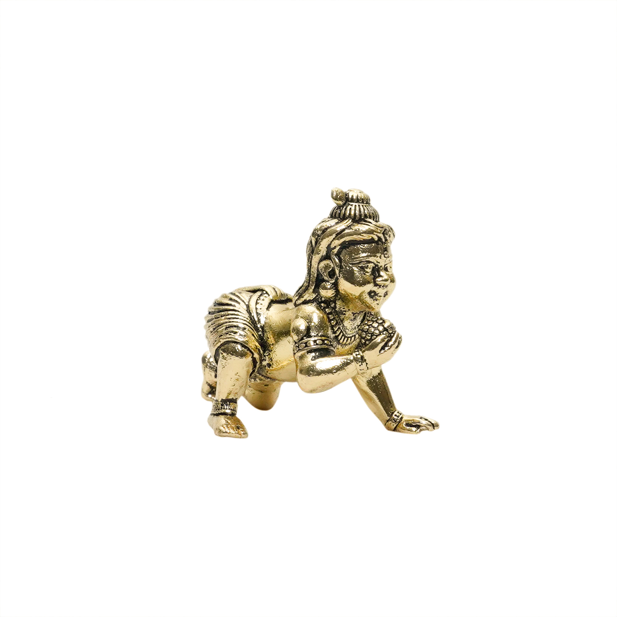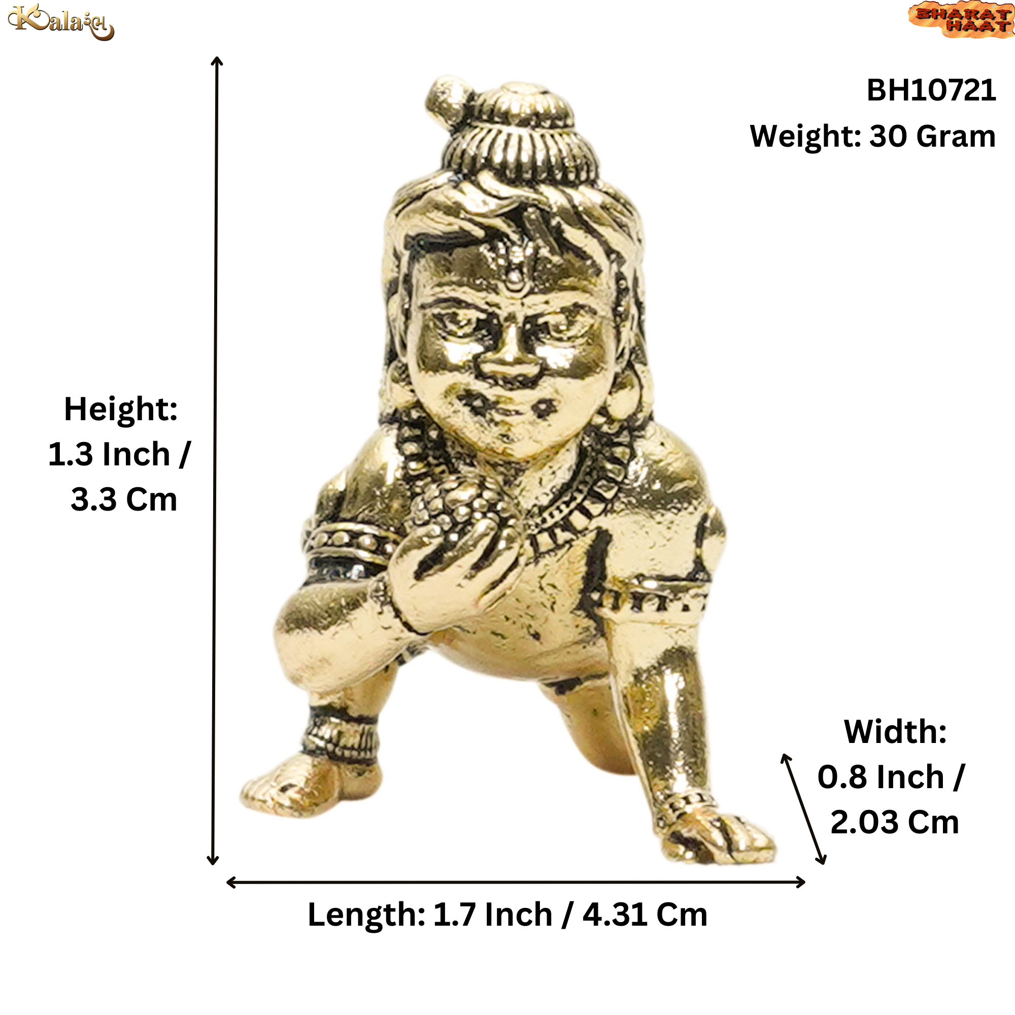Miniature Brass Bal Krishna idol, 1.7 x 0.8 x 1.3 inches, 30g – a delicate handcrafted depiction of Lord Krishna as a child, symbolizing love, joy, and divine playfulness.